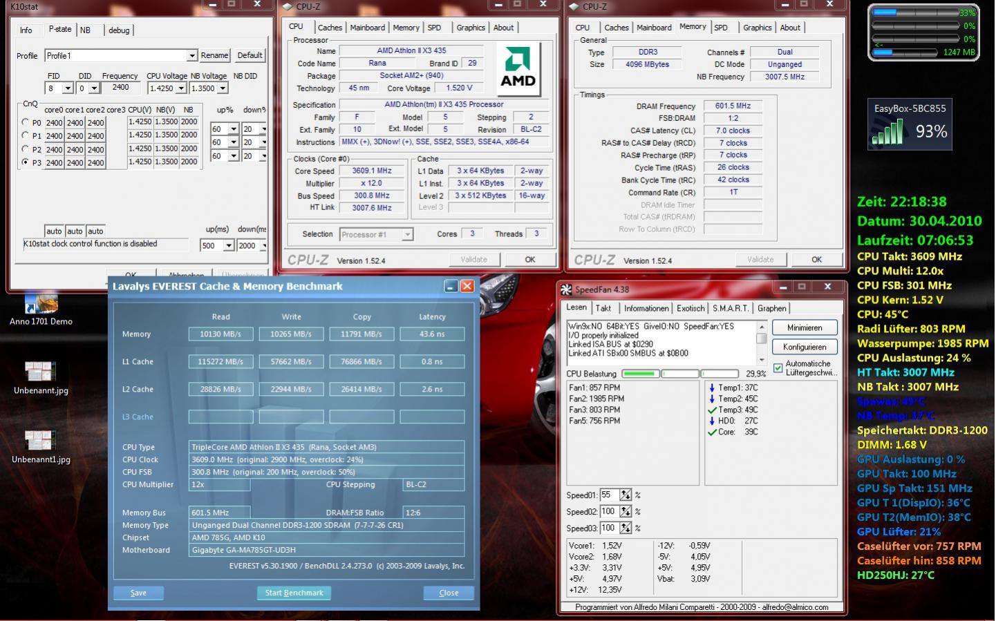 Board hab ich das MSI 870A-G54 mit neuestem BIOS und mein RAM ist G.Skill DIMM Kit 4GB PC3-12800U CL9-9-9-24 (DDR3-1600) (F3-12800CL9D-4GBNQ) (http://gh.de/a351375.html)