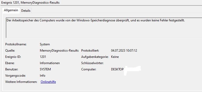 Mein nächster Schritt war die Speicherdiagnose von Windows laufen zu lassen, auch hier wurden keine Fehler festgestellt. (Bild 8+9)
