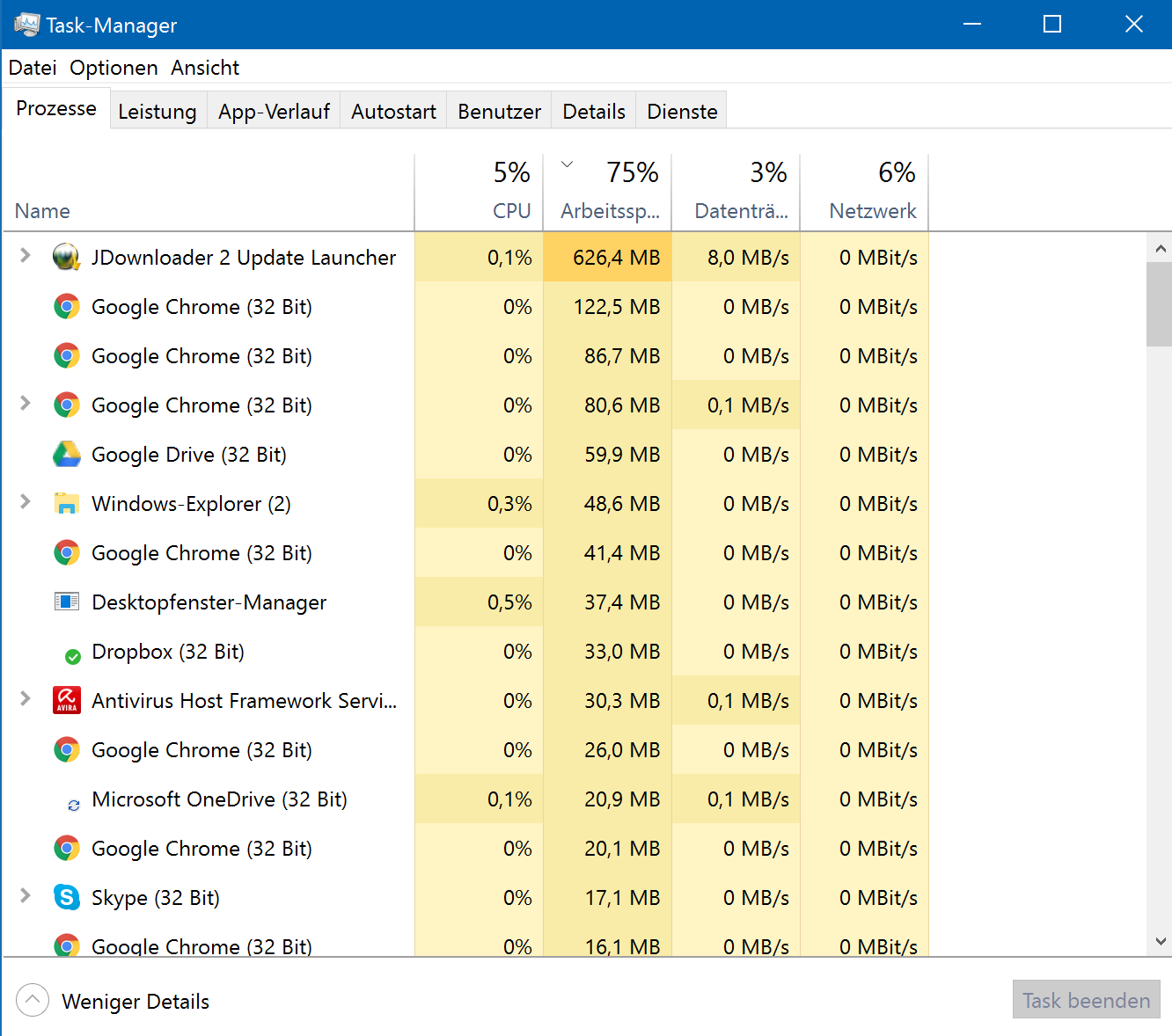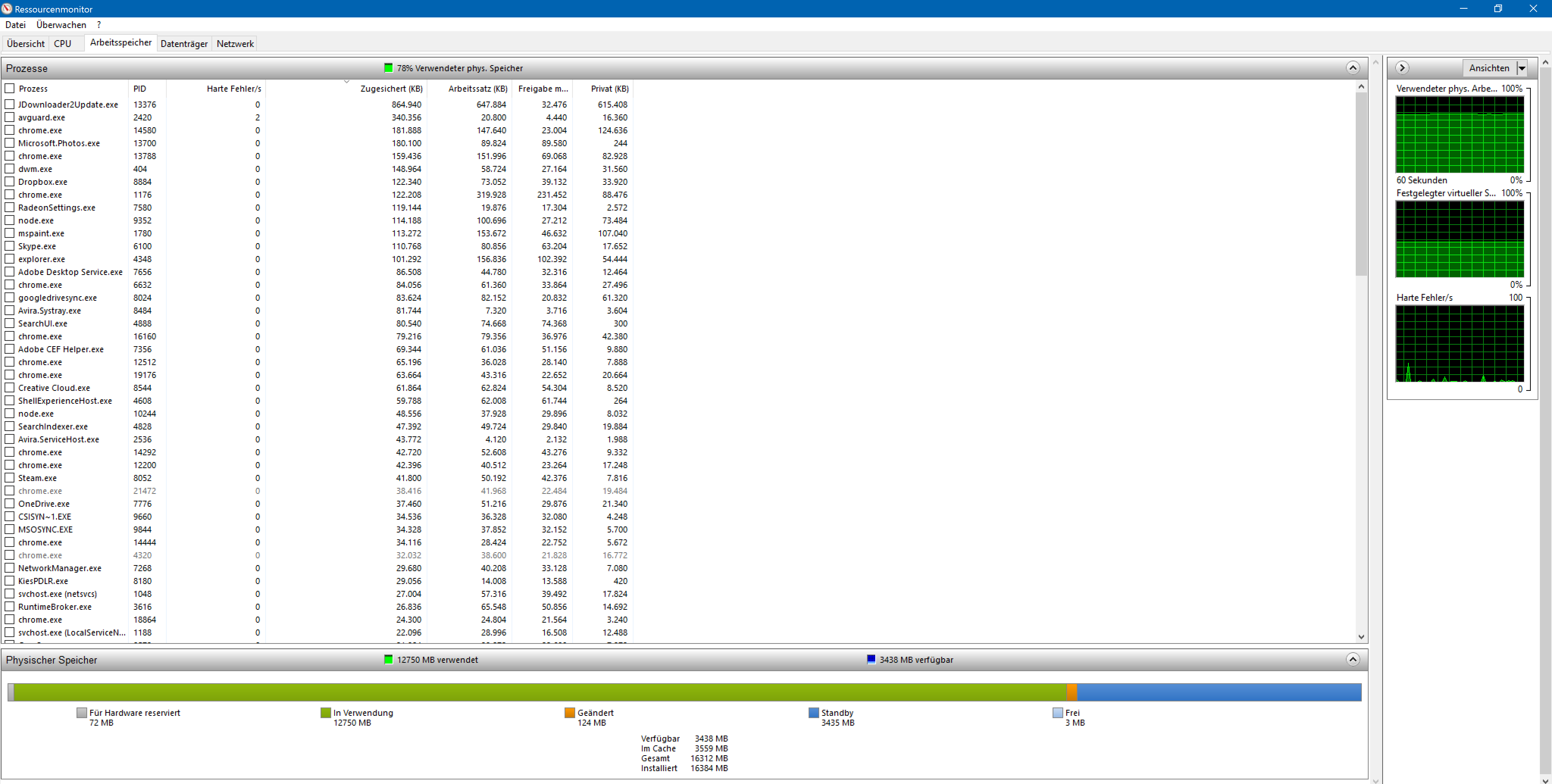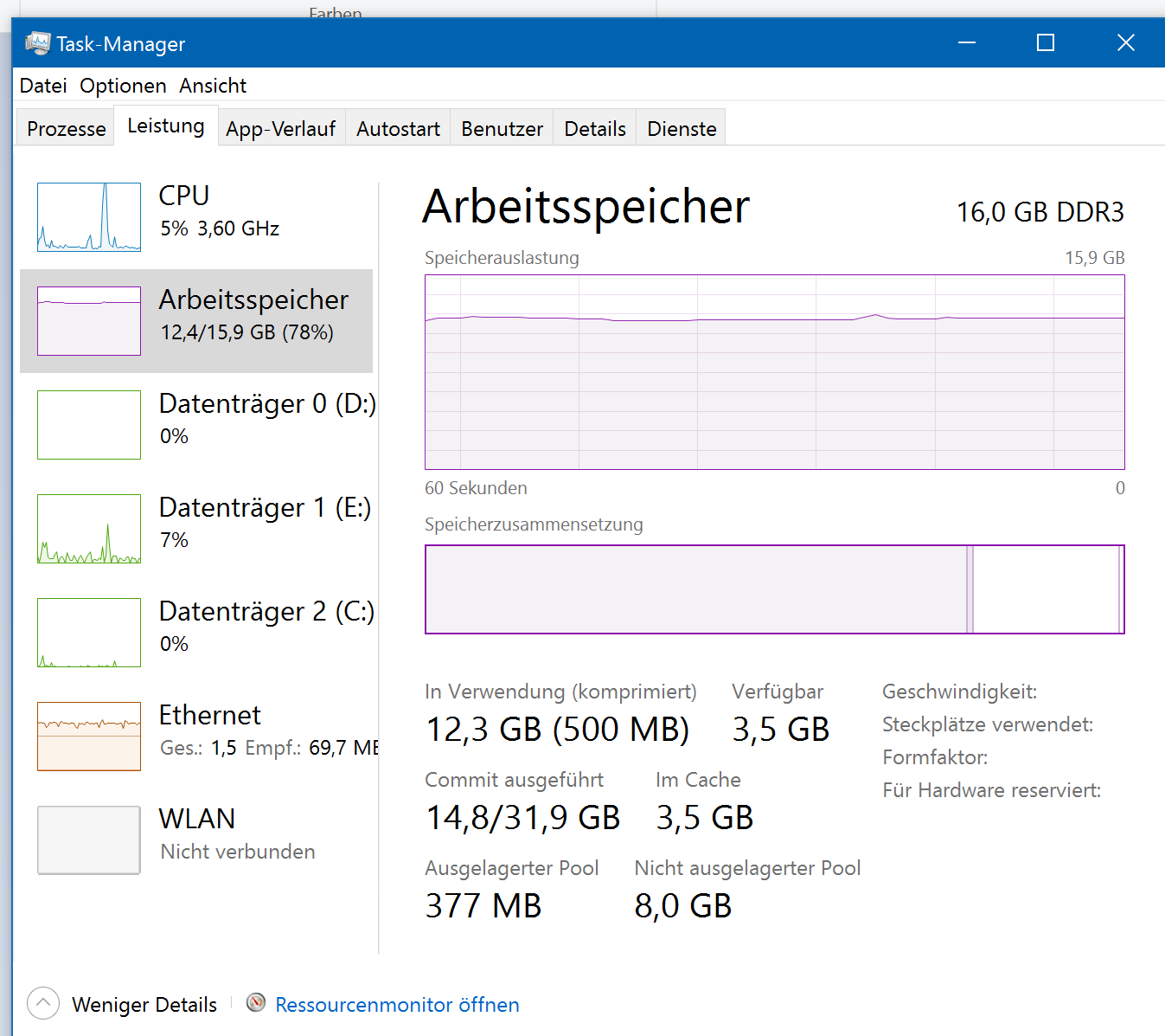 Der Arbeitsspeicher war bei fast 90%, obwohl ich eigentlich nichts offen habe.
