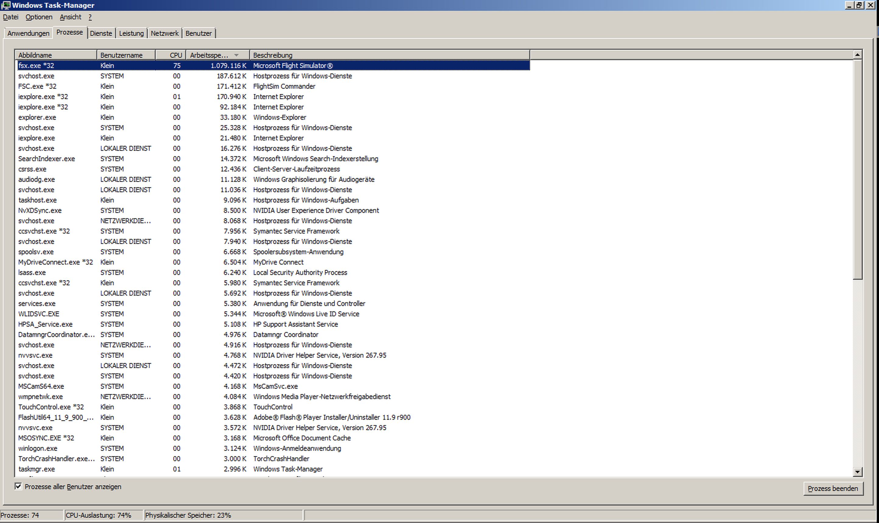 Sobald ich den Flusi starte bekomme ich ständig die Meldung: CPU ausgelastet und irgendwann bricht das Programm ab, weil der Arbeitsspeicher voll ist.