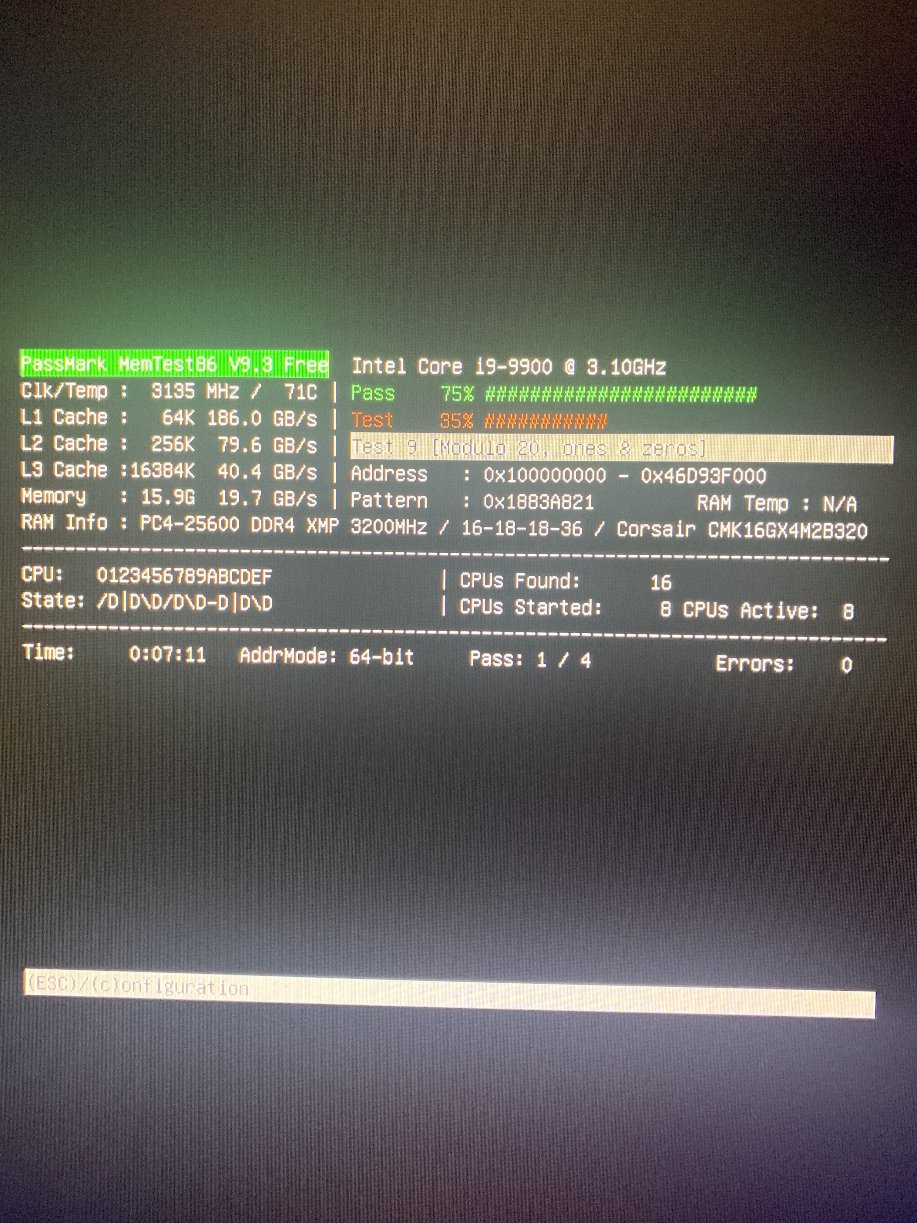 Habe die zwei Riegel wieder rausgenommen und kurz 1 pass memtest gestartet wieder ohne Fehler . Also wie schon richtig gesagt , läuft vollbestückung nicht richtig . Werde deshalb bei 2 Riegel bleiben .