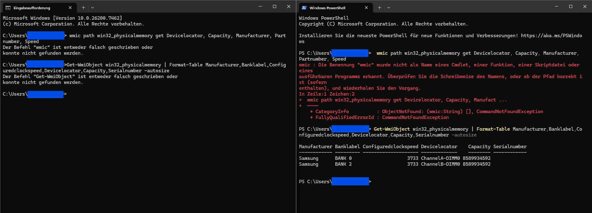 PS: Ich wusste doch, dass ich da mal was gelesen habe. WMIC wurde aus Win 11 entfernt und kann optional nachinstalliert werden: https://support.microsoft.com/de-de...-windows-e9e83c7f-4992-477f-ba1d-96f694b8665d.