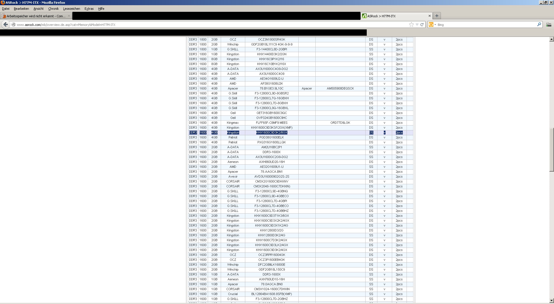 undzwar das Kingston HyperX 8GB kit.