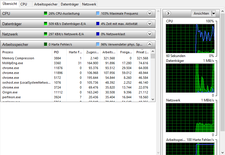 Ich bin nicht auf den kopf gefallen und kenne mich auch recht gut mit meinem pc aus (als leihe in der thematik) doch wenn in den Prozessen der maximale ram verbrauch bei 60mb liegt können ja schlecht mal eben 16gb ram mal eben so ausgelastet sein hatte das problem auf win 7 nie und bin jetzt schon drann am zweifeln ob win 10 ne gute idee war.