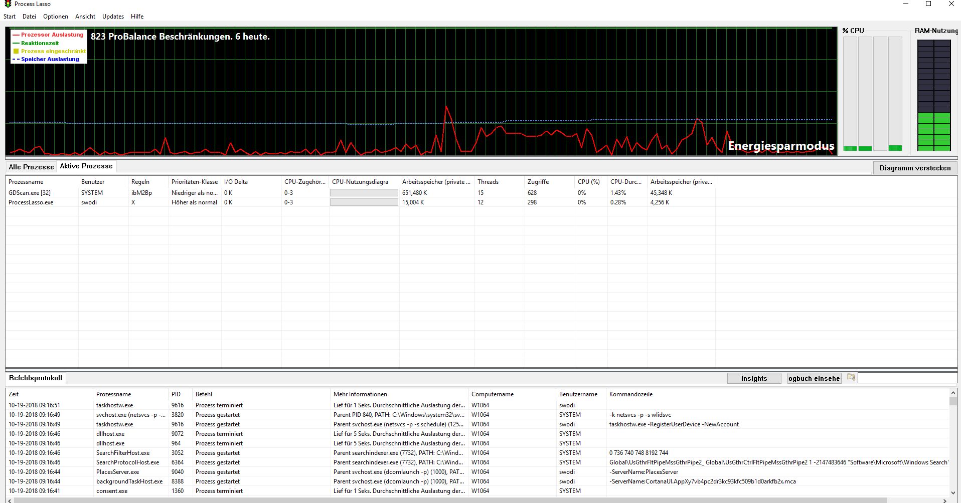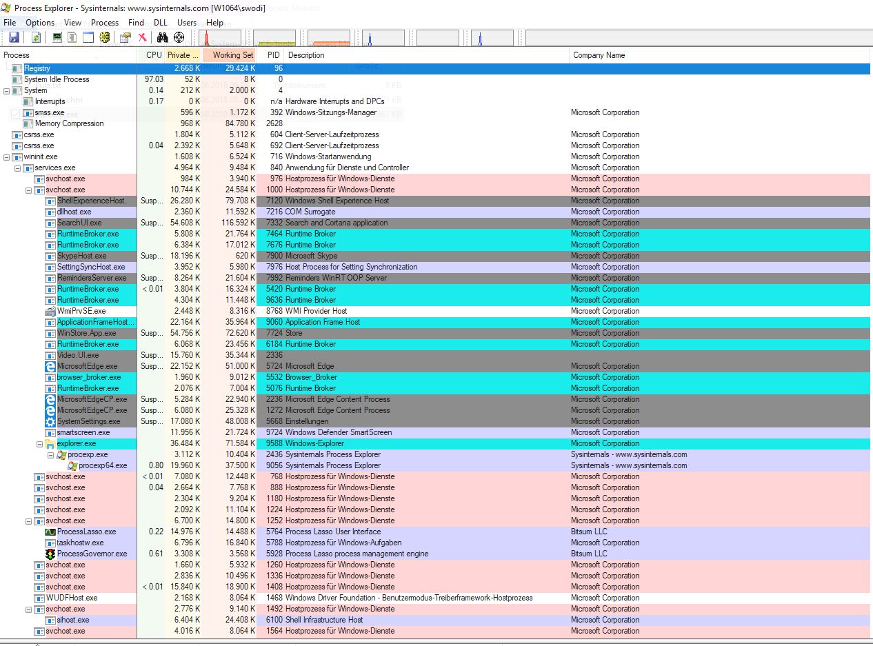 Die Anlagen: Lasso, Lastverteilung, Process-Monitor und VMMap sind Momentaufnahmen im Zustand, in dem der Rechner das Erfassen - im Moment diesen(!) Text nicht übernehmen, Stillstand und das Verschieben des Text Editor-Fenster, in dem dich diesen Text schreibe, nur zögerlich einem Verschieben folgen. In den Systemaufzeichnungen wird keine Überlastung dokumentiert.