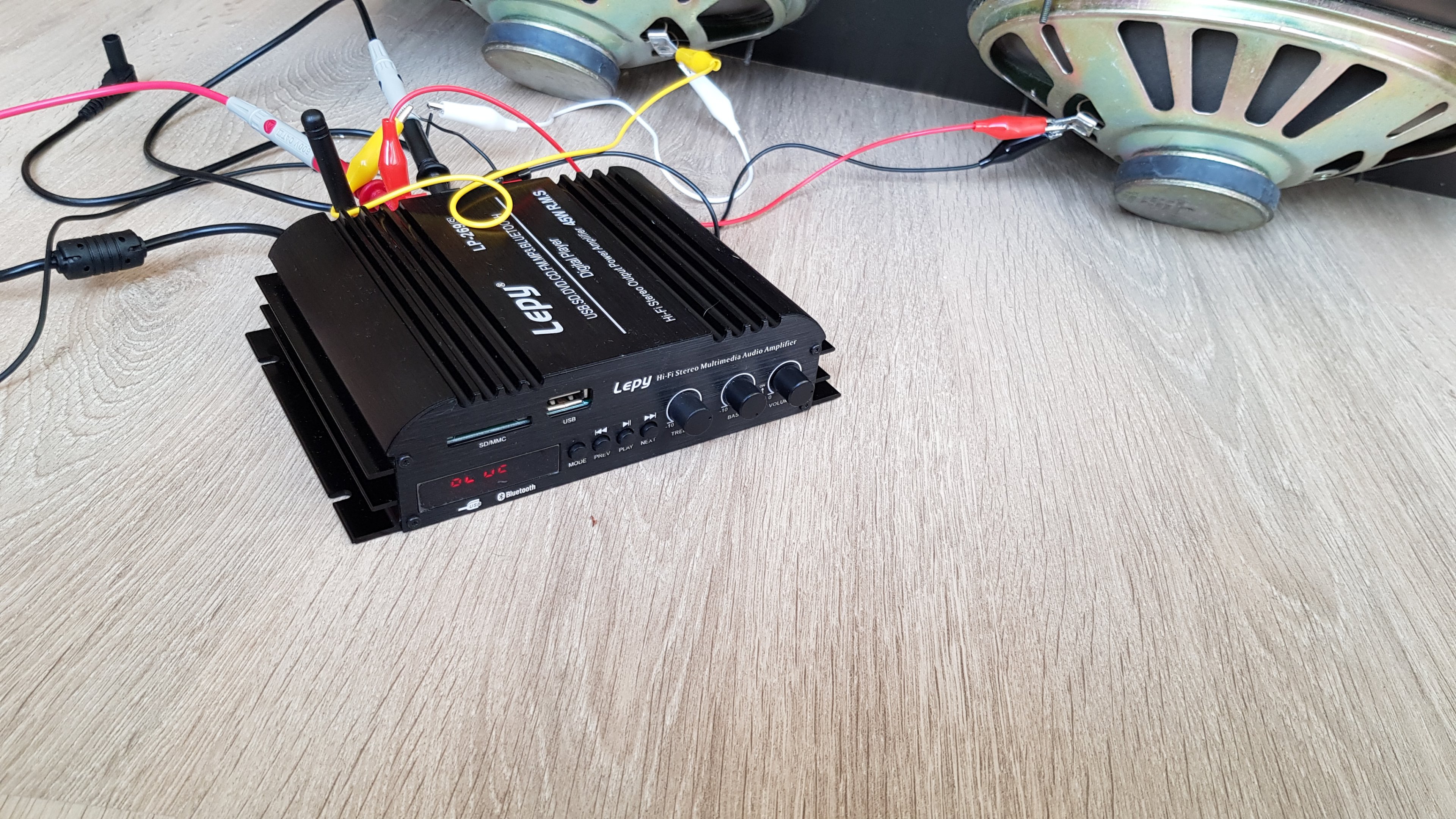 Da ich einen Verstärker brauchte, wurde dieses Gerät gekauft mit 2x40 Watt was dicke reichen wird. Das war das der "günstigste" Verstärker mit Möglichkeit zum Anschrauben.