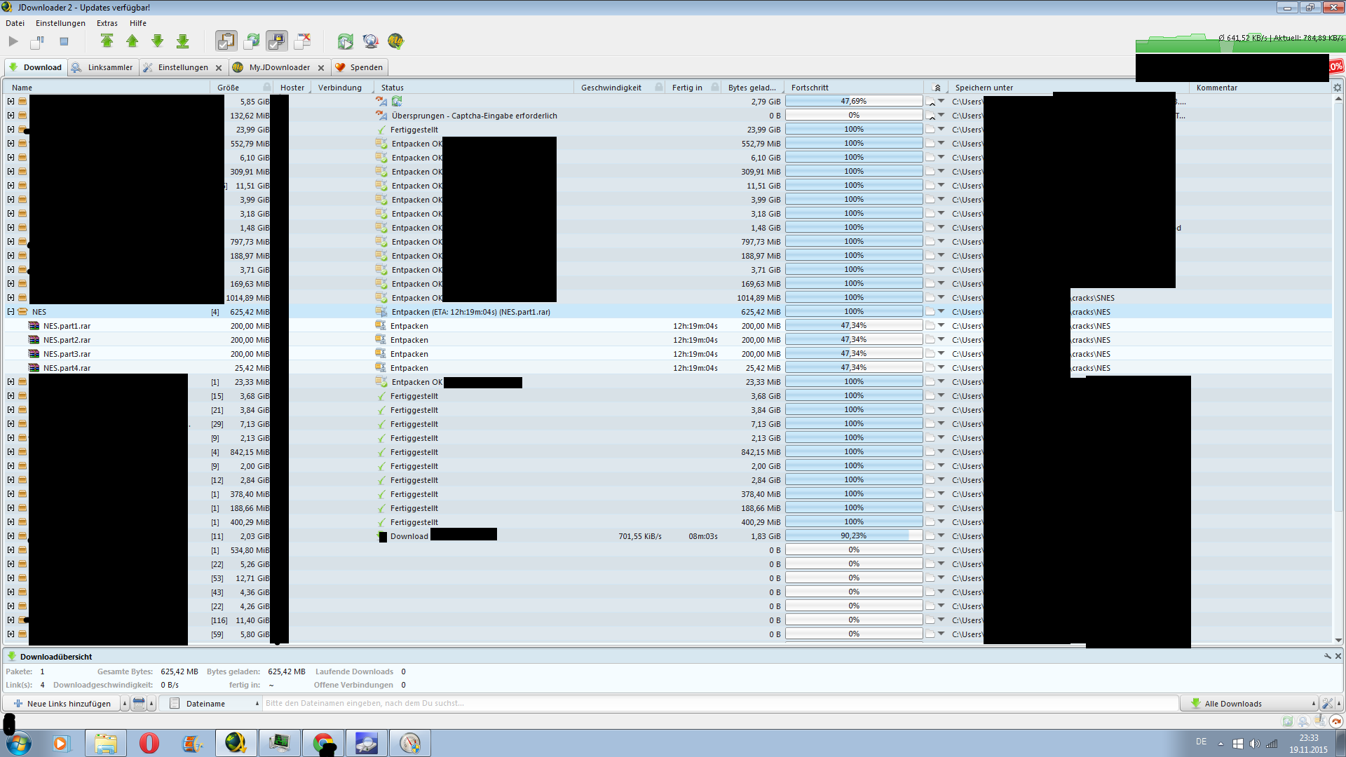 Habe mir Ein Archiv über den Jdownloader heruntergeladen. Es ist in vier Parts aufgeteilt und insgesamt ca.625MB groß.