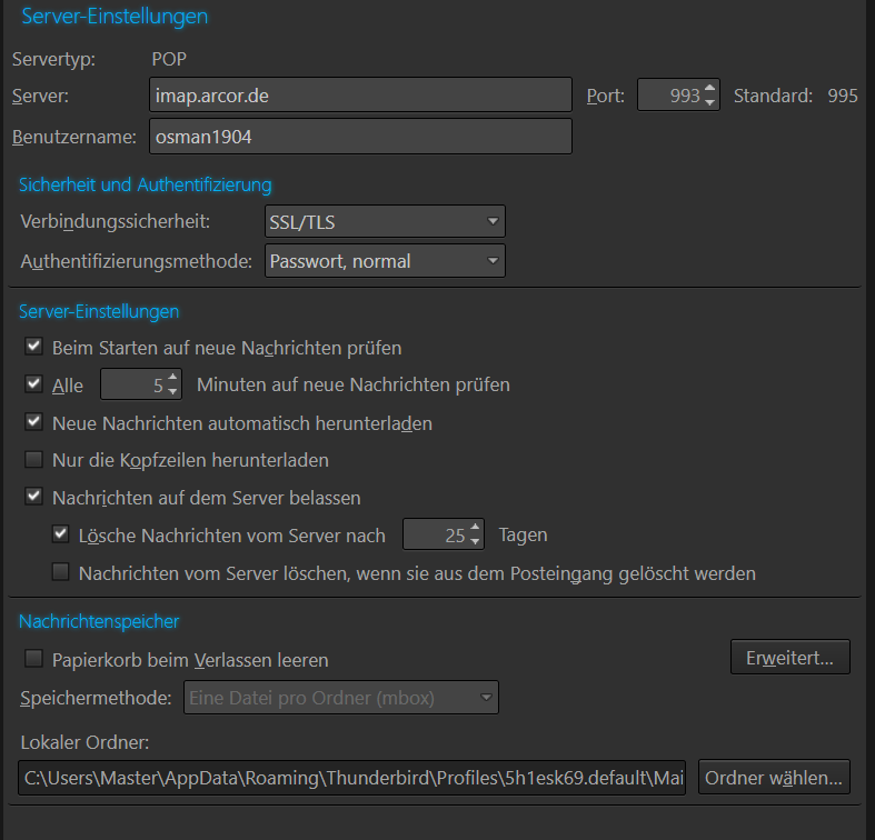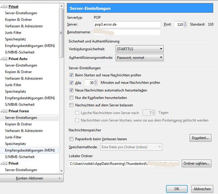 Aber weder Thunderbird noch Outlook bekommt eine Verbindung mit mein Arcor Account.