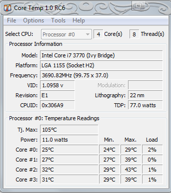 und CoreTemp Den PC herausgefordert ich hoffe du kannst damit was anfangen:
