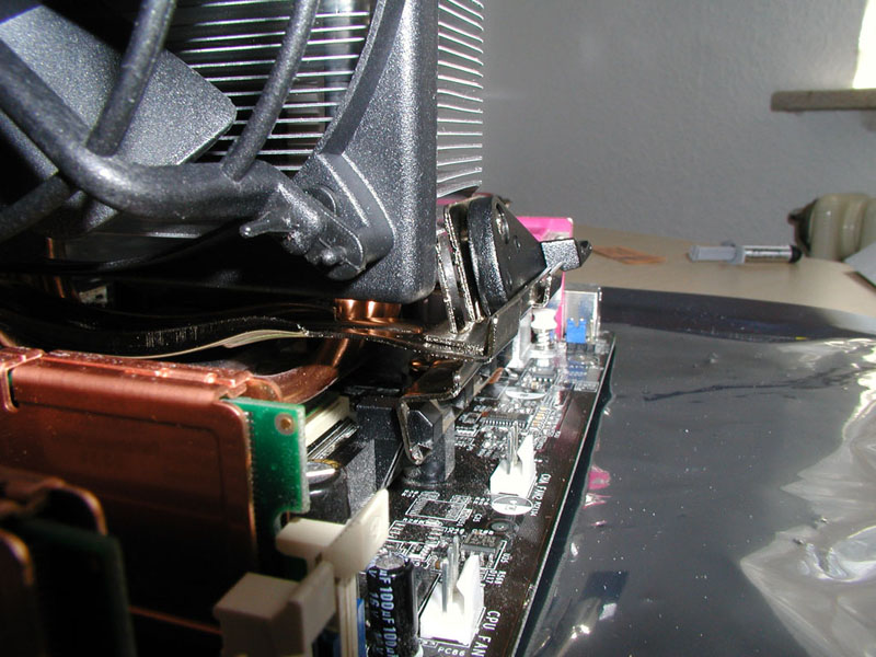 Jetzt sitzt alles aber der Riegel hat sich stark zum Kühler hin gebogen, und die vorinstallierte WLP hat sich nach aussen gedrückt.