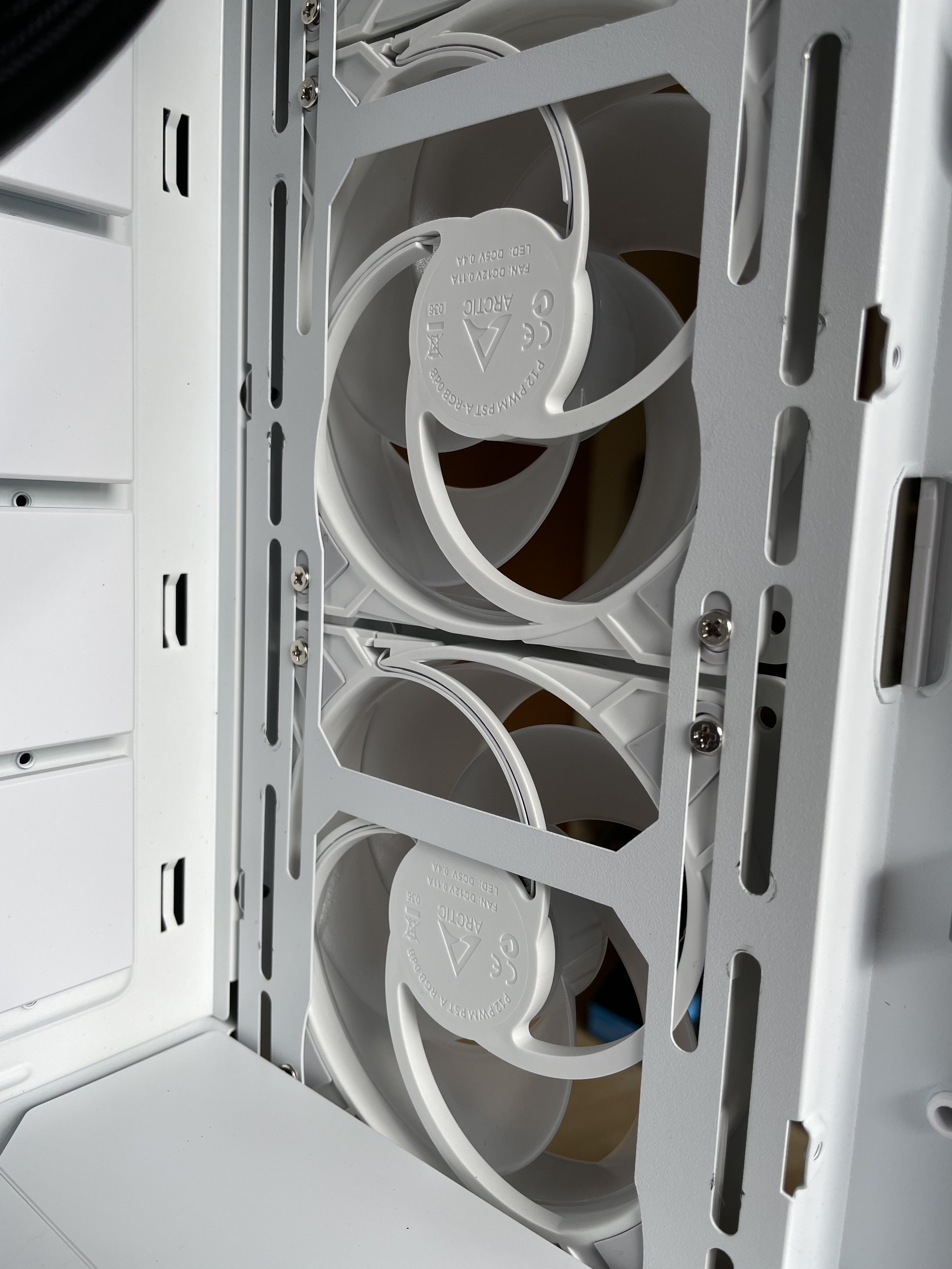 Rein optisch würden weiß lackierte Lüfterschrauben noch einen besseren Eindruck hinterlassen, allerdings wäre hier fraglich, wie gut der Lack halten würde.