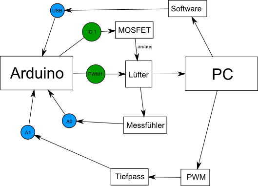 Hintergrund der Frage: Will meinen PC ohne eigenes Gehäuse in den Schrank integrieren. Anschlüsse, Aufteilung, Luftführung .. geht irgendwie. Aber zuverlässig Festplatten, Grafikkarte, Wandler und CPU mit genau dem minimalen Luftstrom zu versorgen schaffe ich m.E. nur wenn ich die einzelnen Lüfter nicht nur blind hochdrehen lasse sondern zueinander in Beziehung setze - also regele, nicht nur steuere. Das ganze soll natürlich auch dann noch funktionieren wenn der zugehörige PC im Bios steht, also in Hardware.
