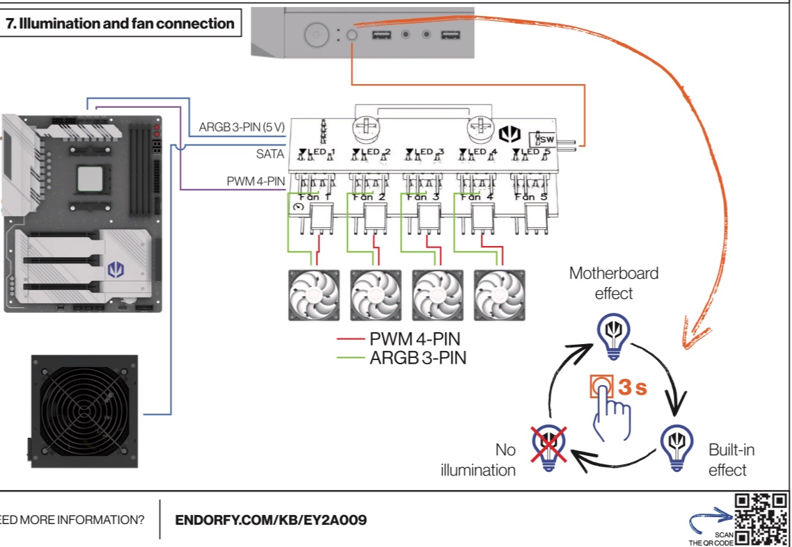 Ich bin gerade dabei mir einen PC zusammenzubauen und verwende als Gehäuse das Endorfy Regnum 400, als Mainboard das MSI B550 A-Pro und als CPU Fan den Endorfy Spartan 5 Max ARGB. Das Gehäuse hat einen ARGB Hub.