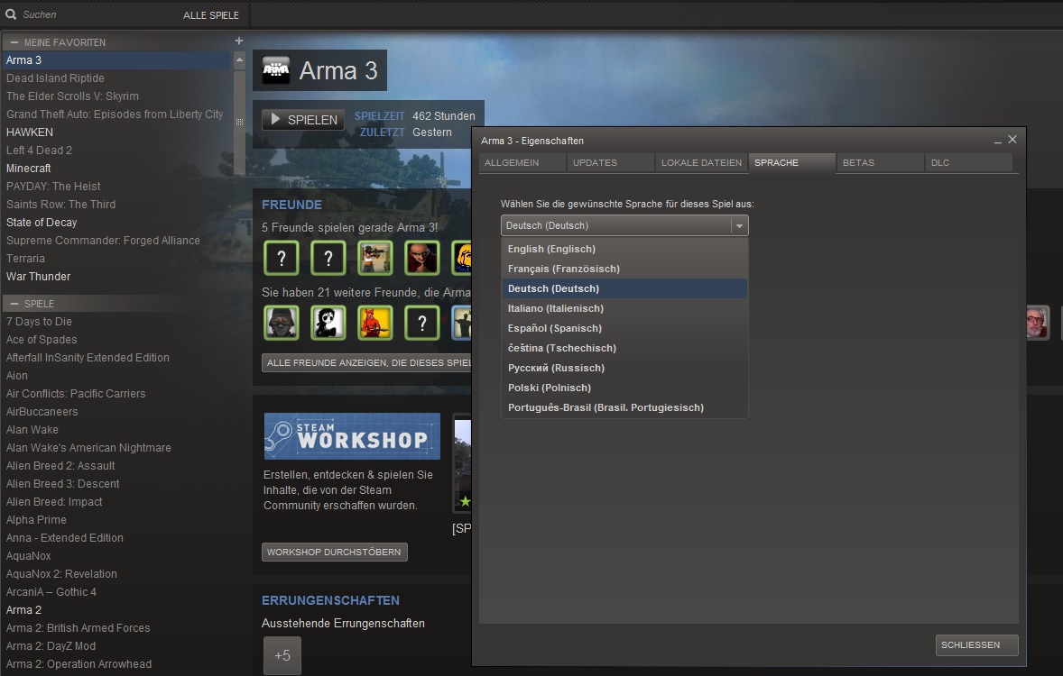 Ich habe mir letztens eine Arma 3 Key gekauft, die englische Version weil diese am günstigsten war und die deutschen alle vergriffen waren zumindest die günstigen.Ich hab im Internet gelesen das Arma kein Region Lock oder ähnliches besitzt dennoch kann ich es weder in Steam noch Ingame auf Deutsch stellen. Kann mir jemand weiterhelfen? Nirgendwo sonst finde ich eine Antwort auf mein Problem und ich hoffe ihr könnt mir weiterhelfen