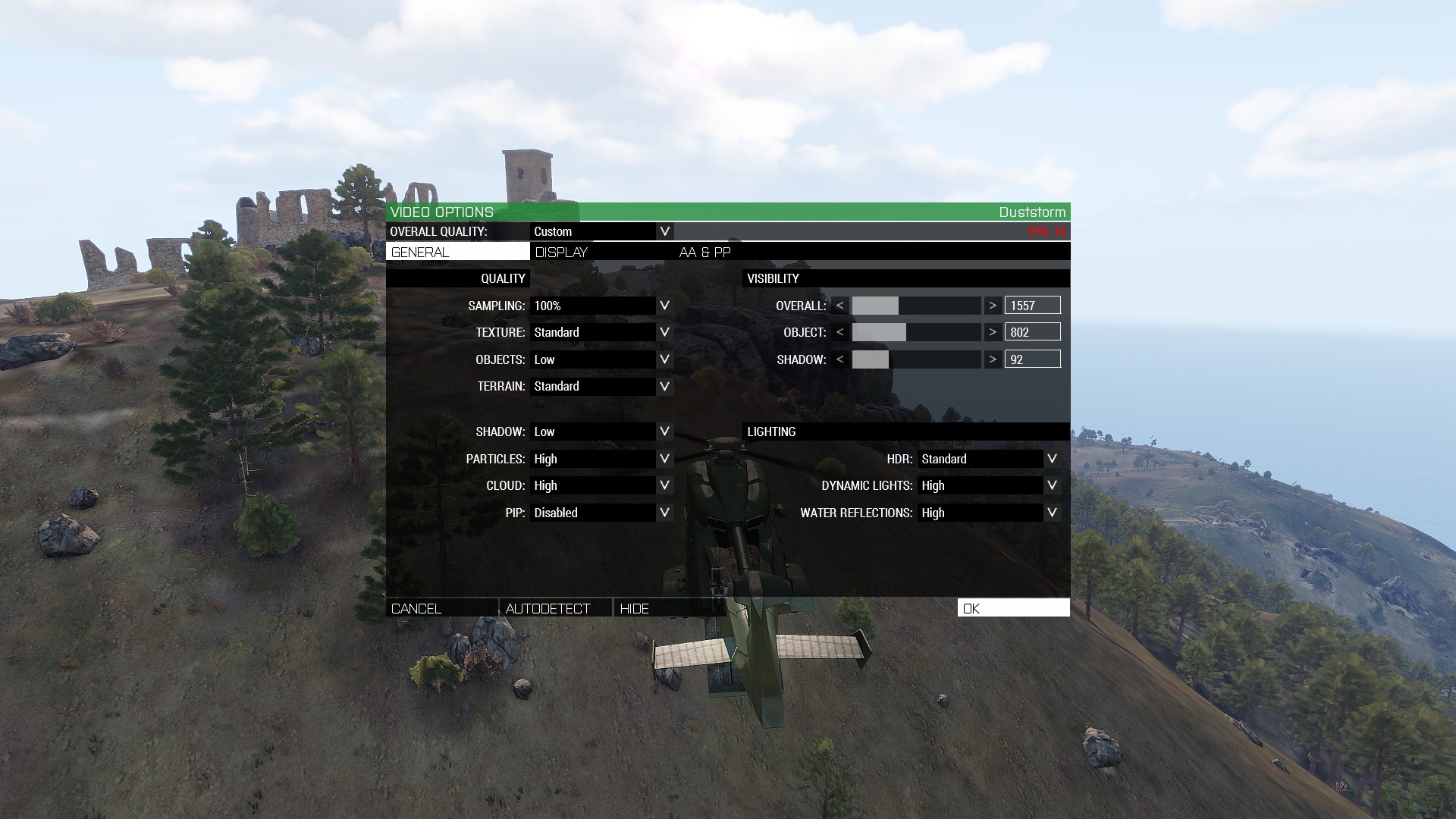 Sampling, Texture, Shadow (Qualität, nicht Sichtweite!), Cloud, HDR, Dynamic Lights und Water Reflections kannst du übrigens ruhig auf Maximum setzen (außer Sampling nur so zwischen 130 und 150), denn die belastet nahezu nur die Grafikkarte. Das schafft sogar meine 290 noch gut :-)