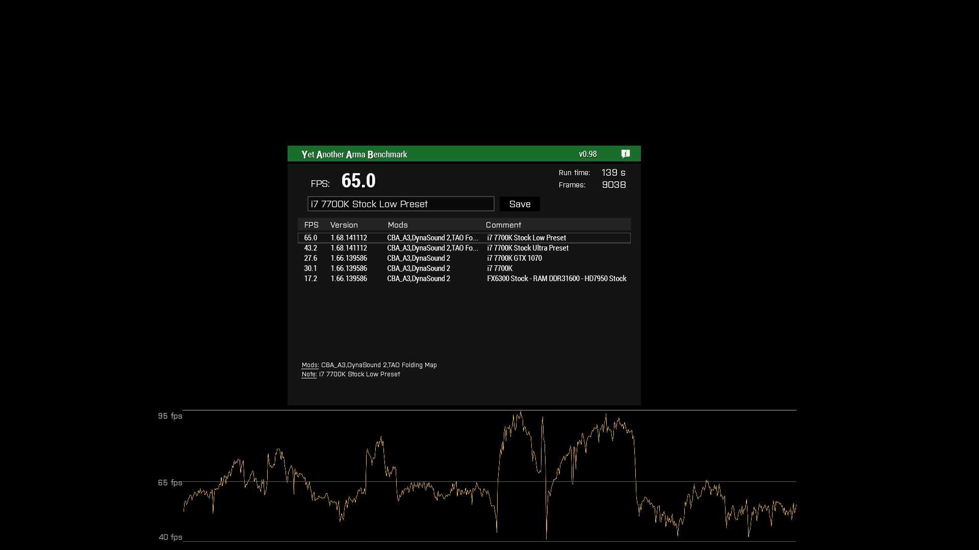 Solltet ihr einen Ryzen haben und bei gleichem CPU takt nicht in ähnliche FPS Bereiche vordringen, dann ist es der RAM. ArmA3 ist sehr RAM lastig.