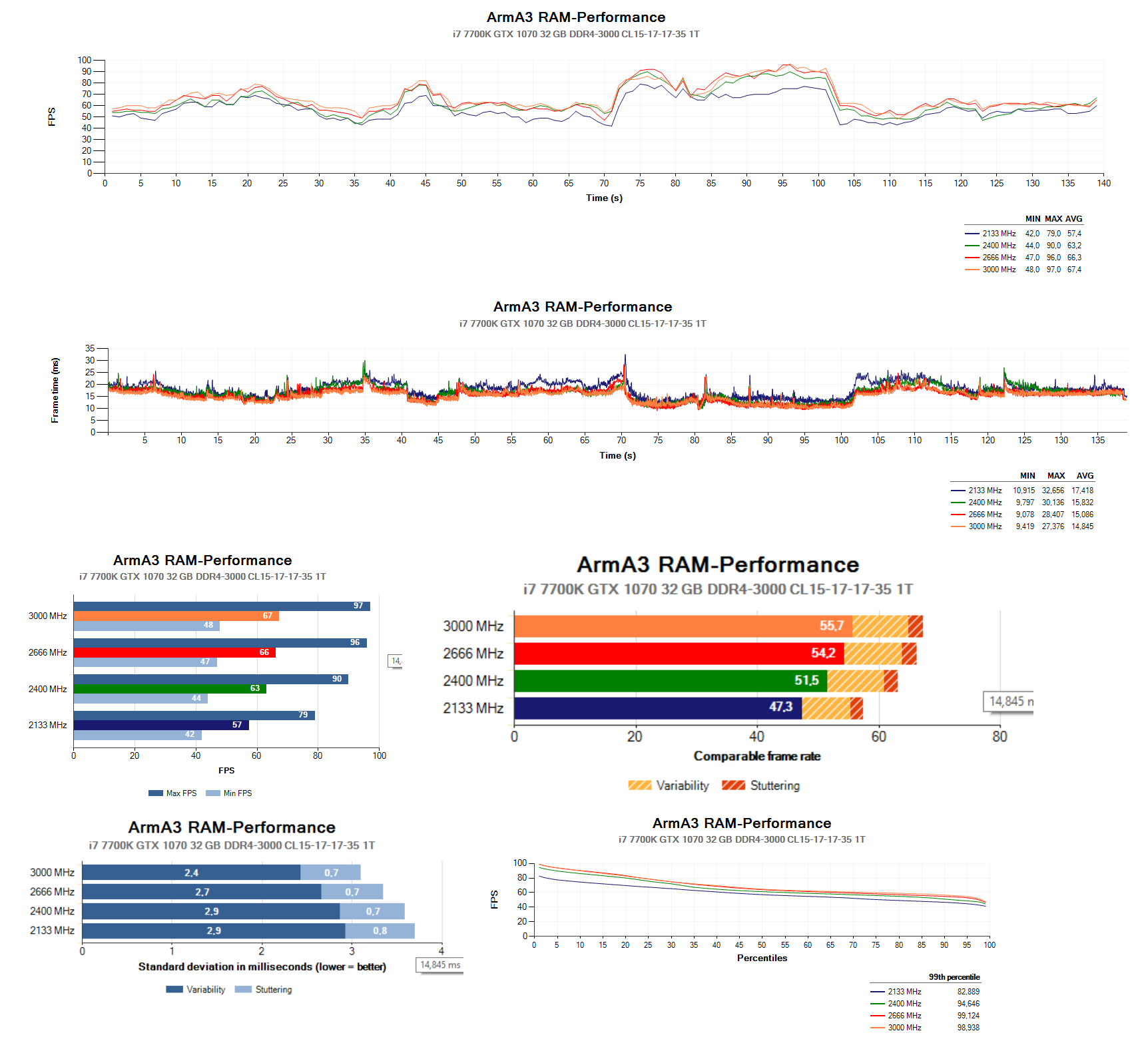 Also das wirkt sich schon aus. Hab eben mal die verschiedenen RAM-Speeds getestet. Bei Spielen wie ArmA3 biste immer im CPU-Limit und da wirkt sich das gewaltig aus. Man sieht aber auch, dass je höher der RAM taktet der Gewinn kleiner wird, hier also anfängt die Northbridge zu limitieren. Mache gleich mal noch einen Benchmarkrun mit 3000 Mhz und höher getakteter Uncore, also Northbridge.