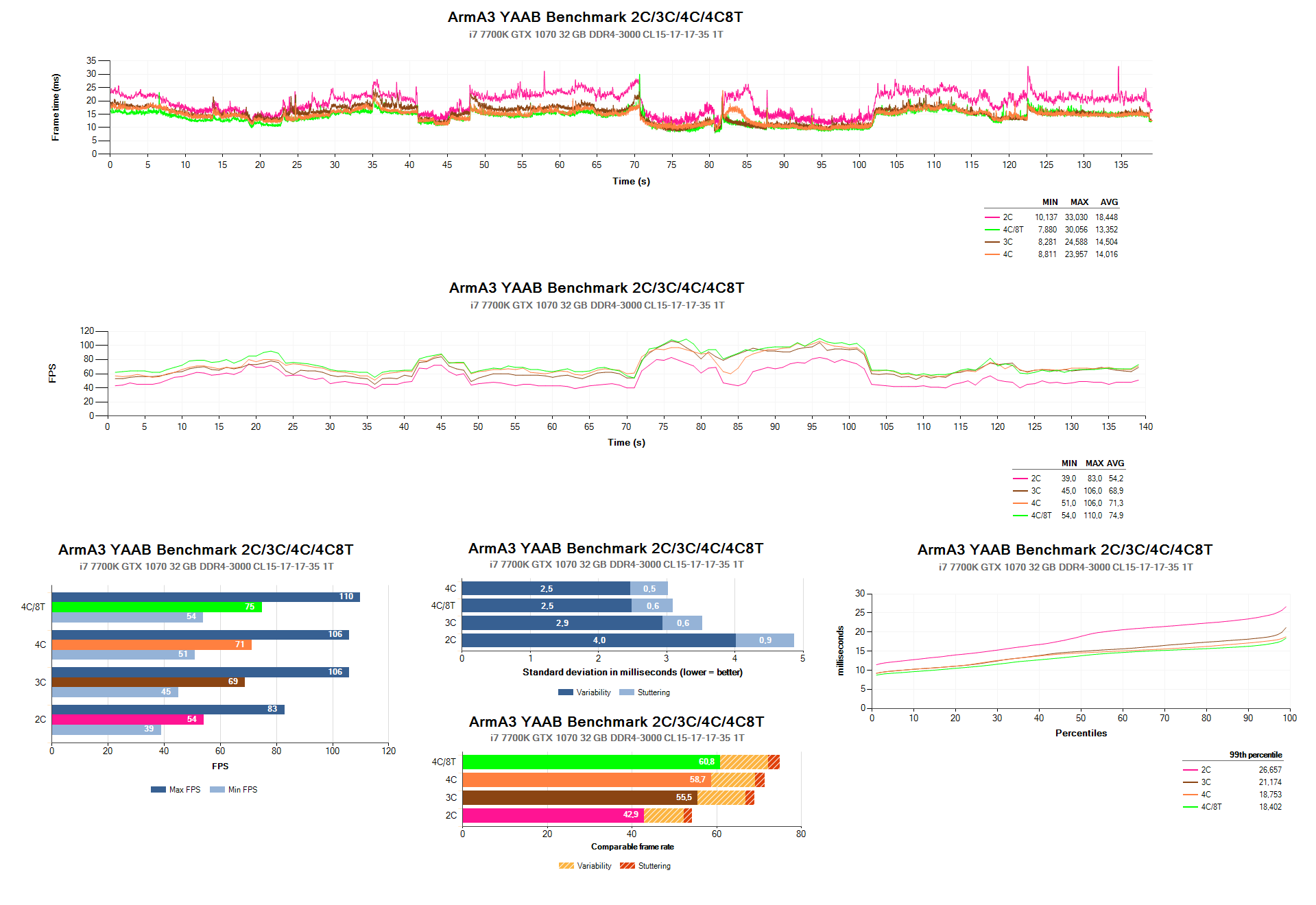 Hier gibts nochmal ein sehr interessantes Video zum Frameverlauf von ArmA3 auf einem 8600k @ 5.2GHz vs. einen 2700x @4.3GHz.