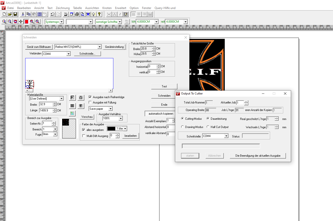 Ich bitte um Eure Hilfe zum Thema ArtCut 2009, einem Schneideplotter MH Refine721 (DMPL) und Windows 10.