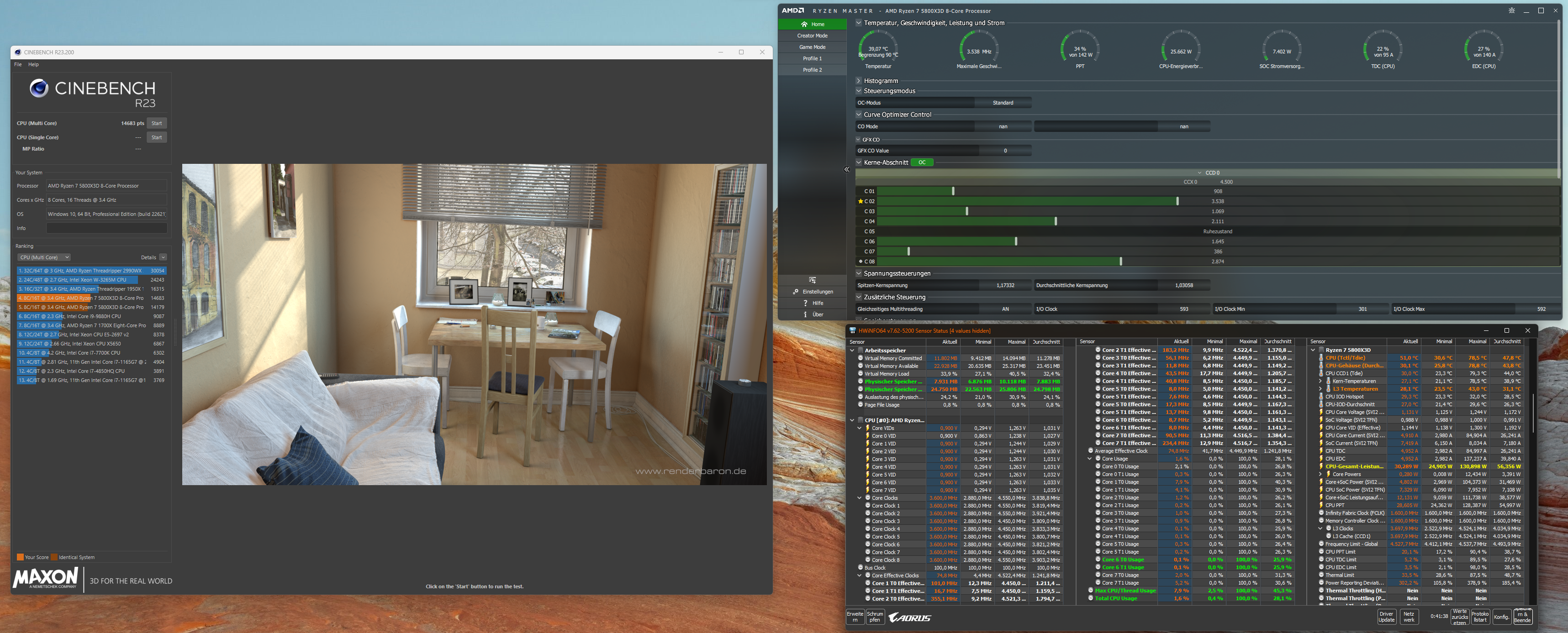 Ich hänge euch mal einen Screenshot an mit HWInfo und CB wo der besagte R7 5800X3D unter dem LF3 360 lief und gerne für die, die das Teil einmal eingebaut sehen wollen auch noch ein Bild an für sich.