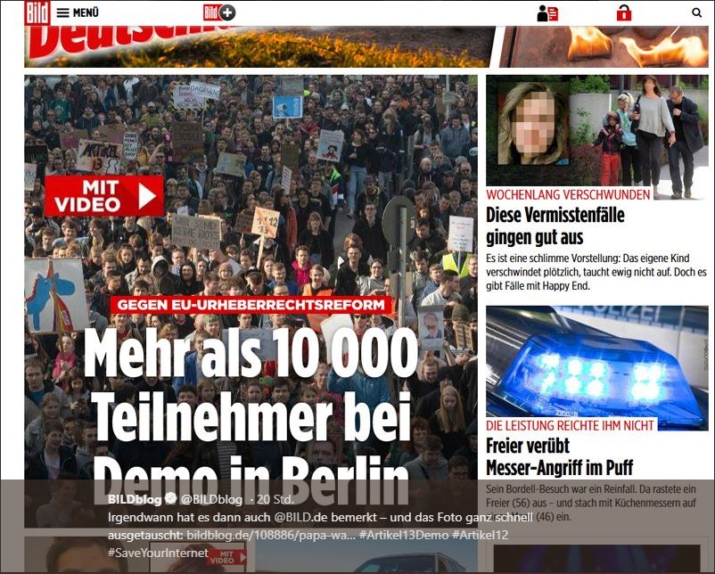 #SaveYourInternet wegen#Artikel13,- Ihr demonstriert bei