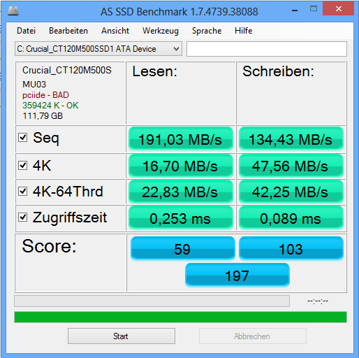 As SSD Bench: Was ist verkehrt? Crucial 120 GB SSD