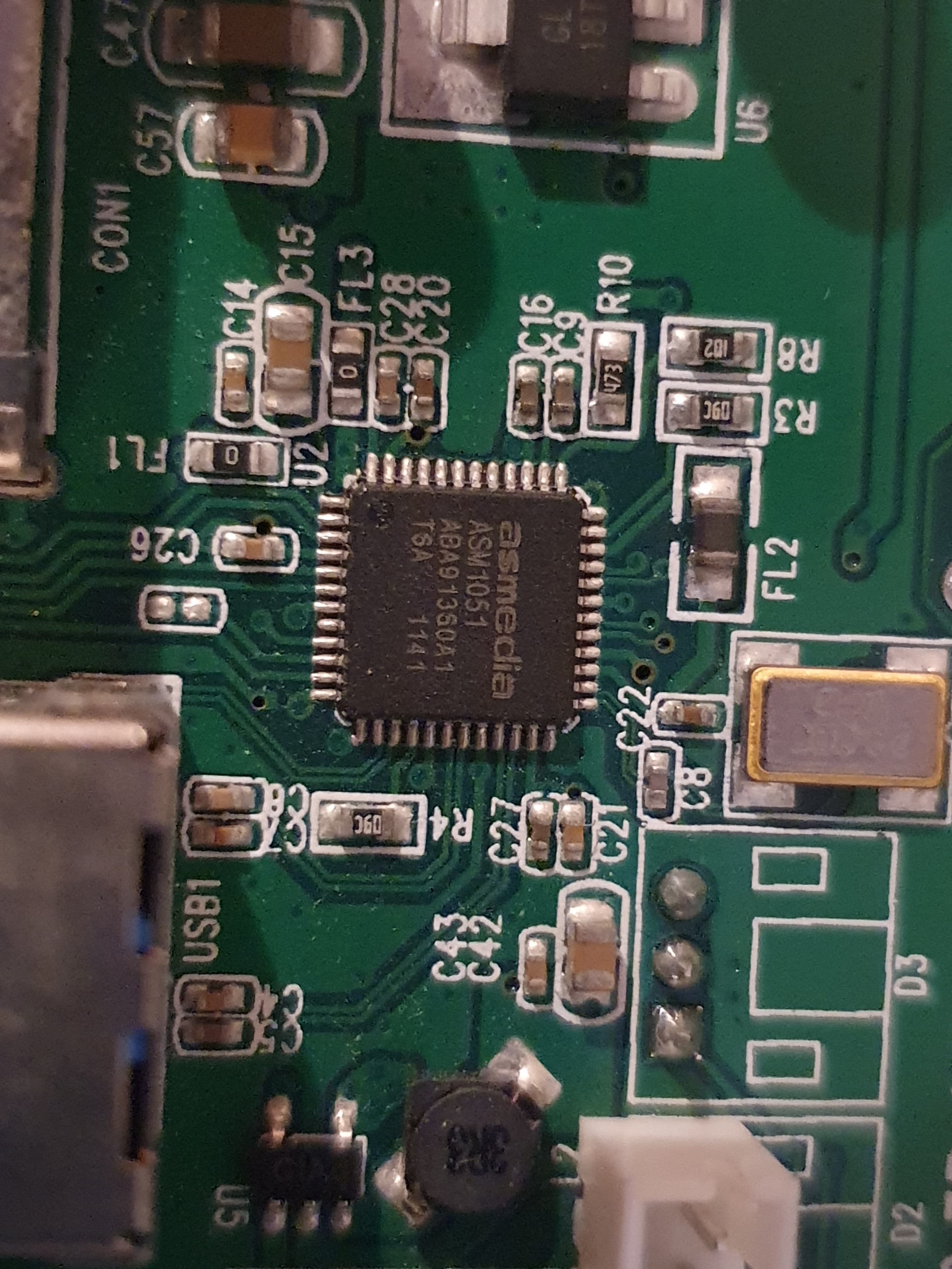 Vllt. ist es das Symptom, was MTechlerin beschreibt im Start-Post, das bei bestimmten gemldeten FW-Kennungen, "das Gehäuse kaputtgeflasht ist), vllt. hängt es mit einem zusätzlichen Flash noch direkt im Asmedia-Brückchip-ROM-Speicher-zusammen mit flascher VID/PID und falschm Chipflash (das war als Absicht gedacht von mir ^^)