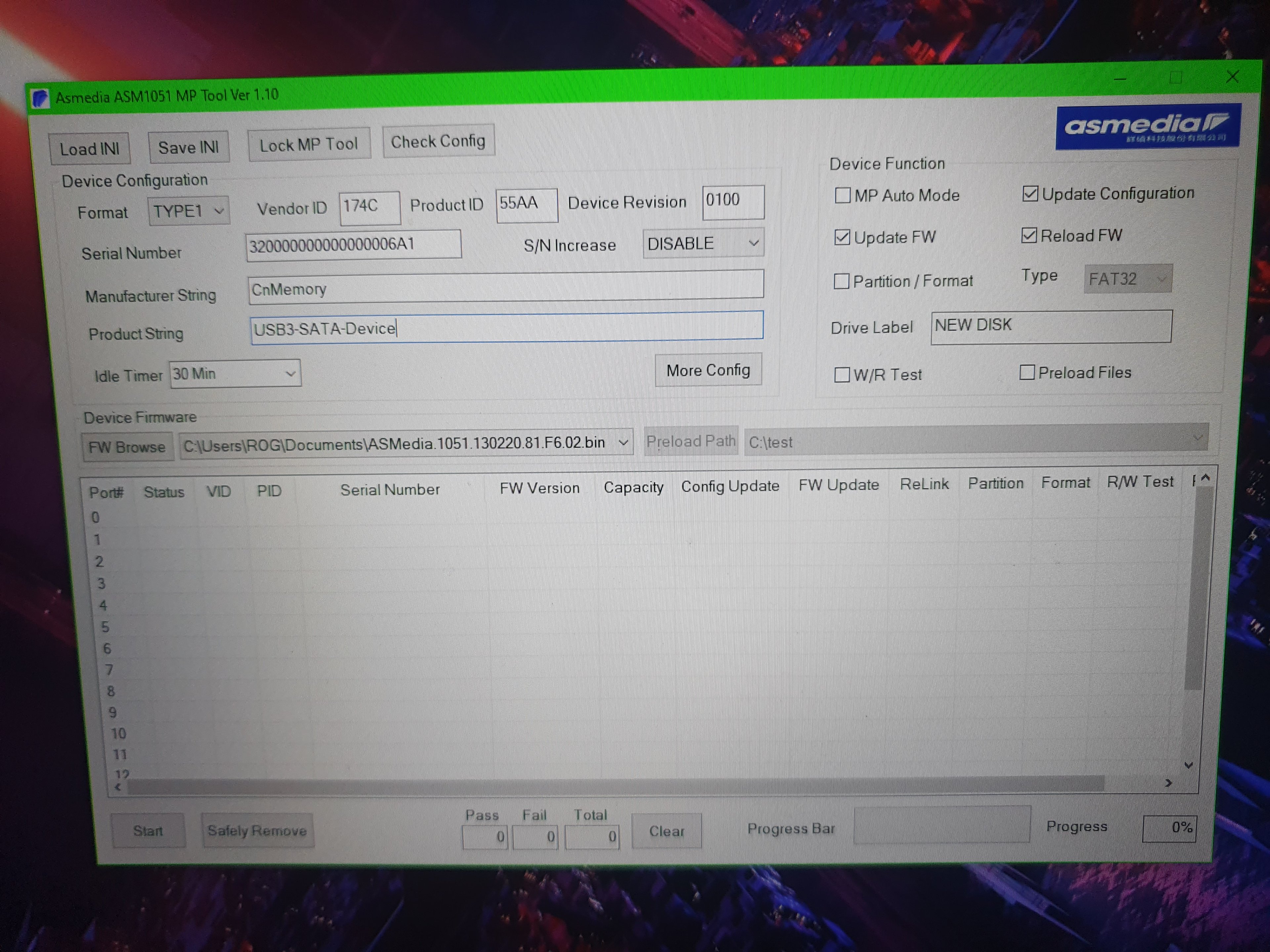 Da es im Netz für mich so aussieht, dass es bis jetzt noch keine Ersatz-Firmwares gäbe, ist ntrl. ein Firmware-Sicherheits-Backup immer gut, was aber nur mit externem Programmer geht, weil die Asmedia MPTools keine Backup-Lese-Funktion haben.
