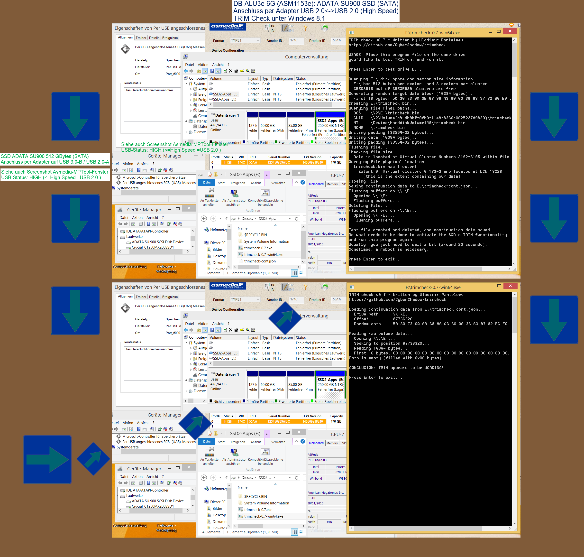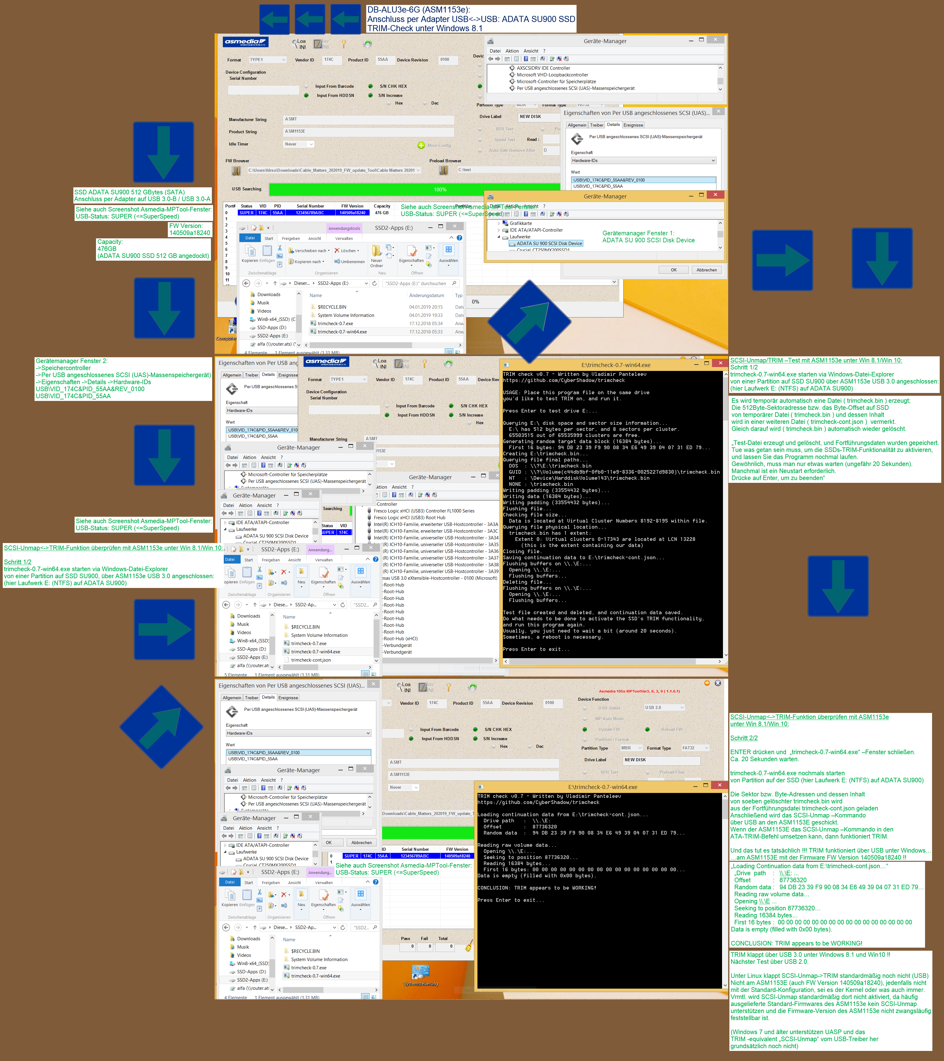 Umfänglicheres ATA-Passthrough mit direkterem TRIM über USB, klappt vllt. mit wenigen JMicron-Chipsätze, bzw. allgemein eher nur mit neueren, glaub mit M.2 auf USB.