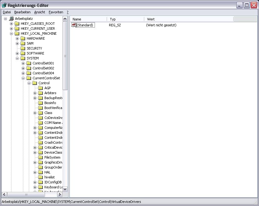 2. Zum Schlüssel HKEY_LOCAL_MACHINE\SYSTEM\CurrentControlSet\Control\VirtualDeviceDrivers navigieren