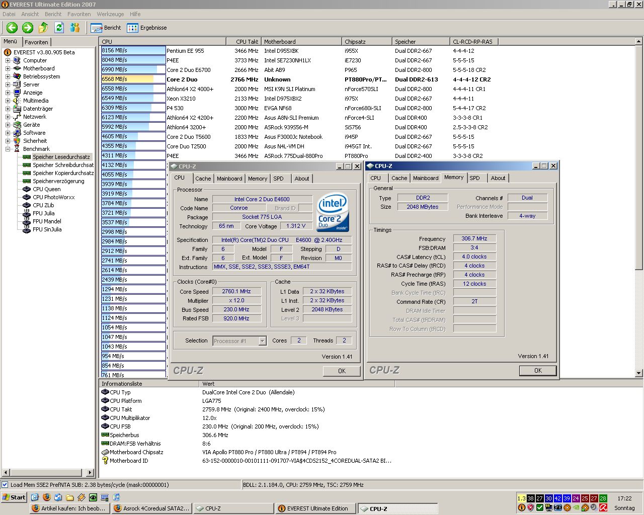 Habe einen C2D E4600 auf FSB 230 angehoben.