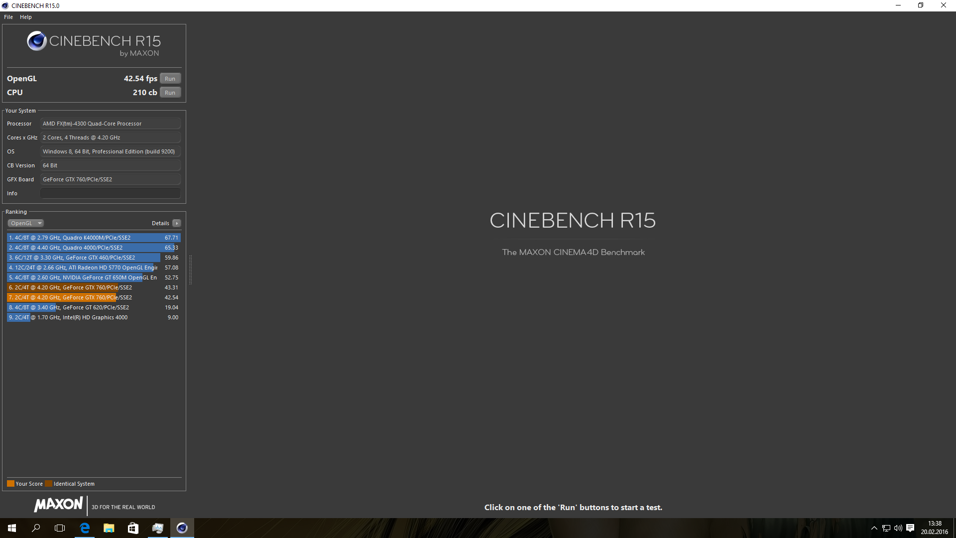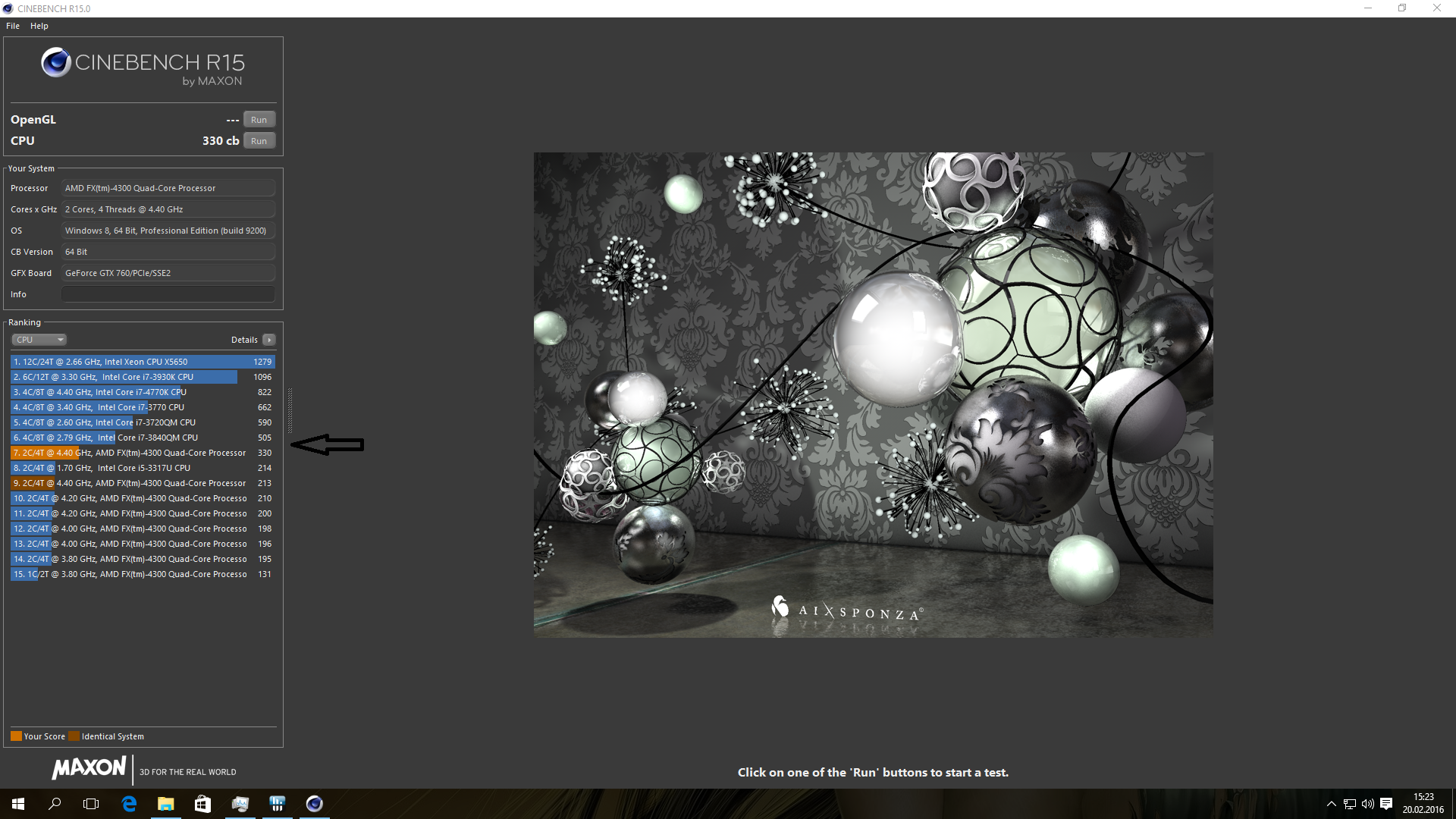 Zum Vergleich: Mit dem AMD 8320 8core und einer GTX 760, habe ich max 5600 Punkte erreicht