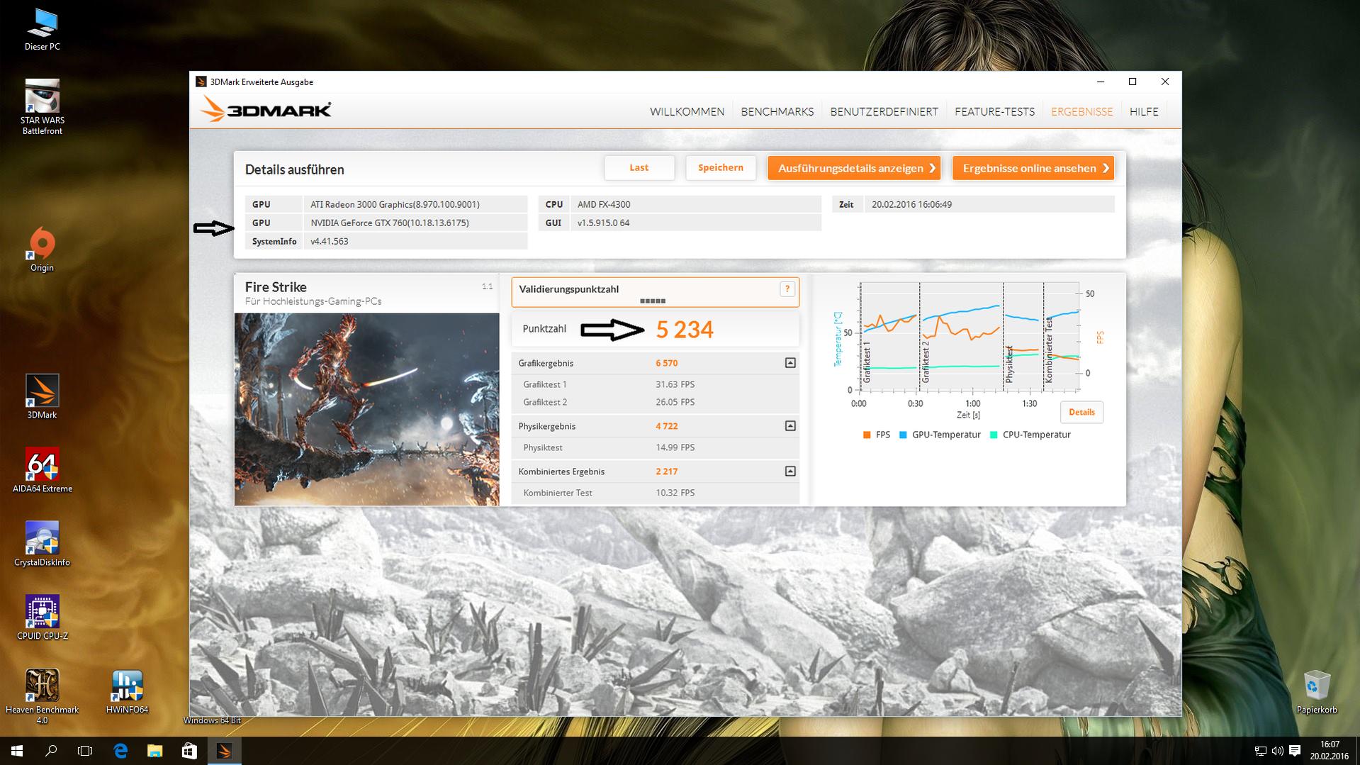 Hier die Fire Strike Punkte: Damals nur 4100 und nun: Seht selbst