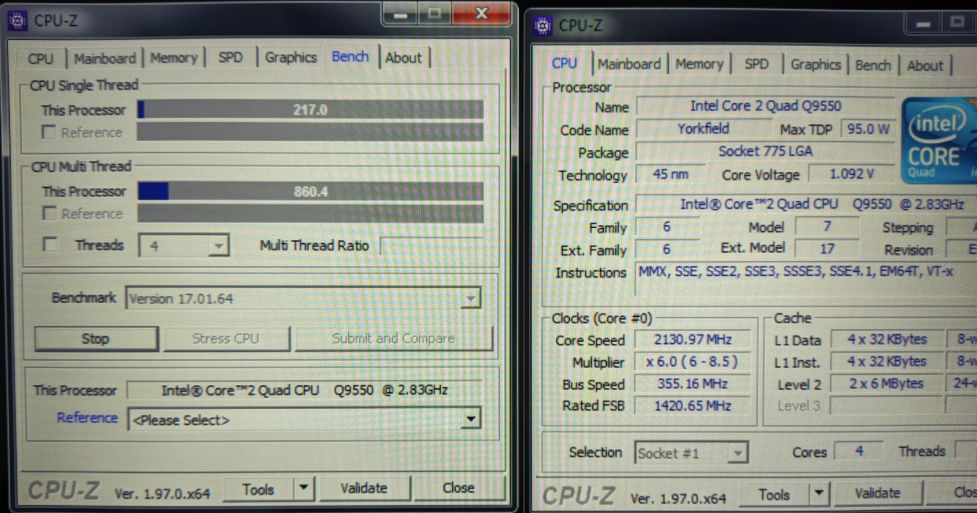 CPU-Z intel Q9550, von AMD ist es im obrigen Beitrag.