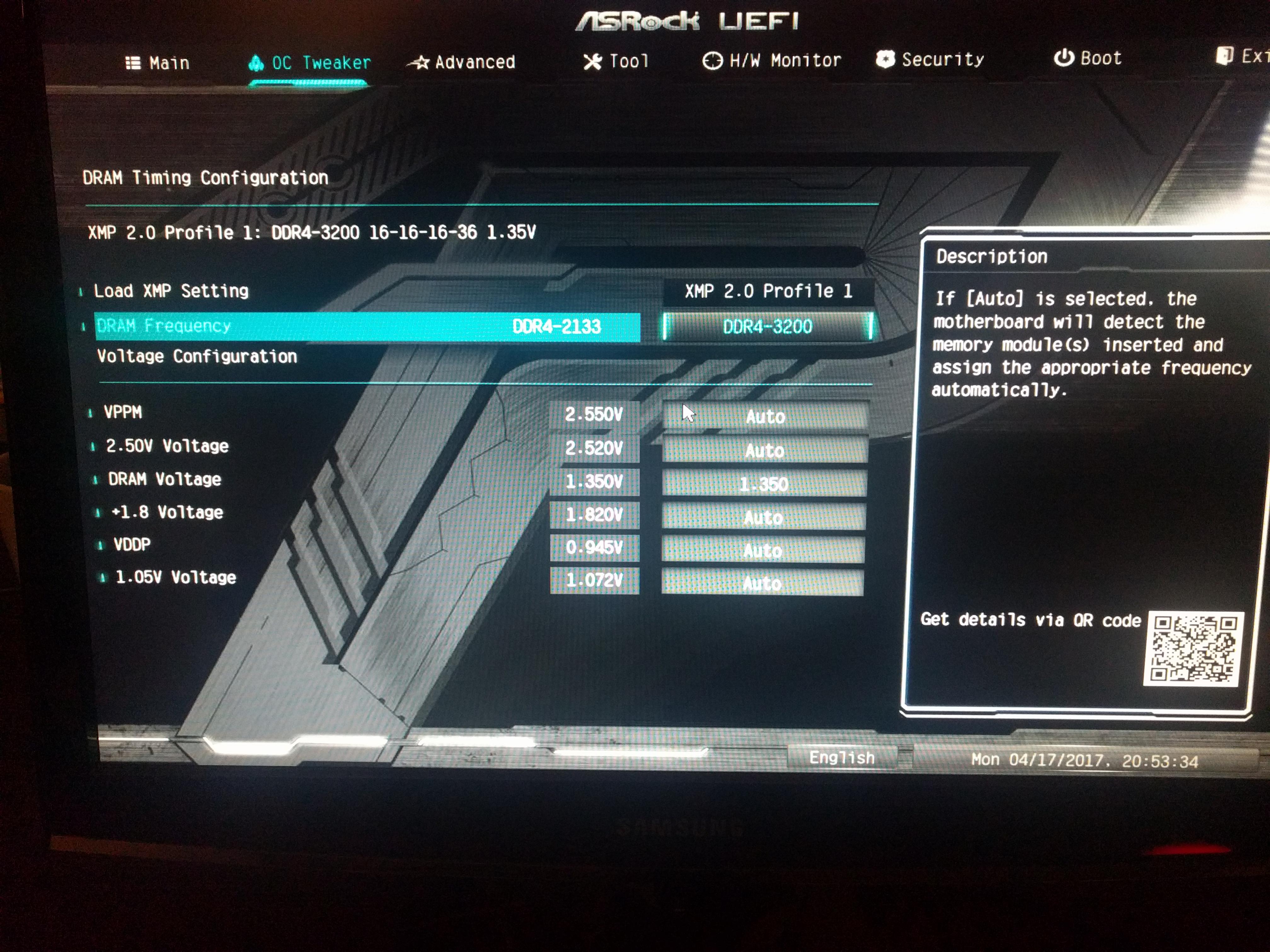 ich kenne mich leider nicht gut mit der Thematik aus, doch hoffe ich, ihr könnt mir womöglich weiter helfen. Für das genannte System habe ich günstigen Trident Z RAM 3200er erwerben können. Leider bekomme ich den nicht auf die volle Geschwindigkeit, obwohl er als kompatibel bei AS-ROCK angegeben wird. XMP habe ich aktiviert.