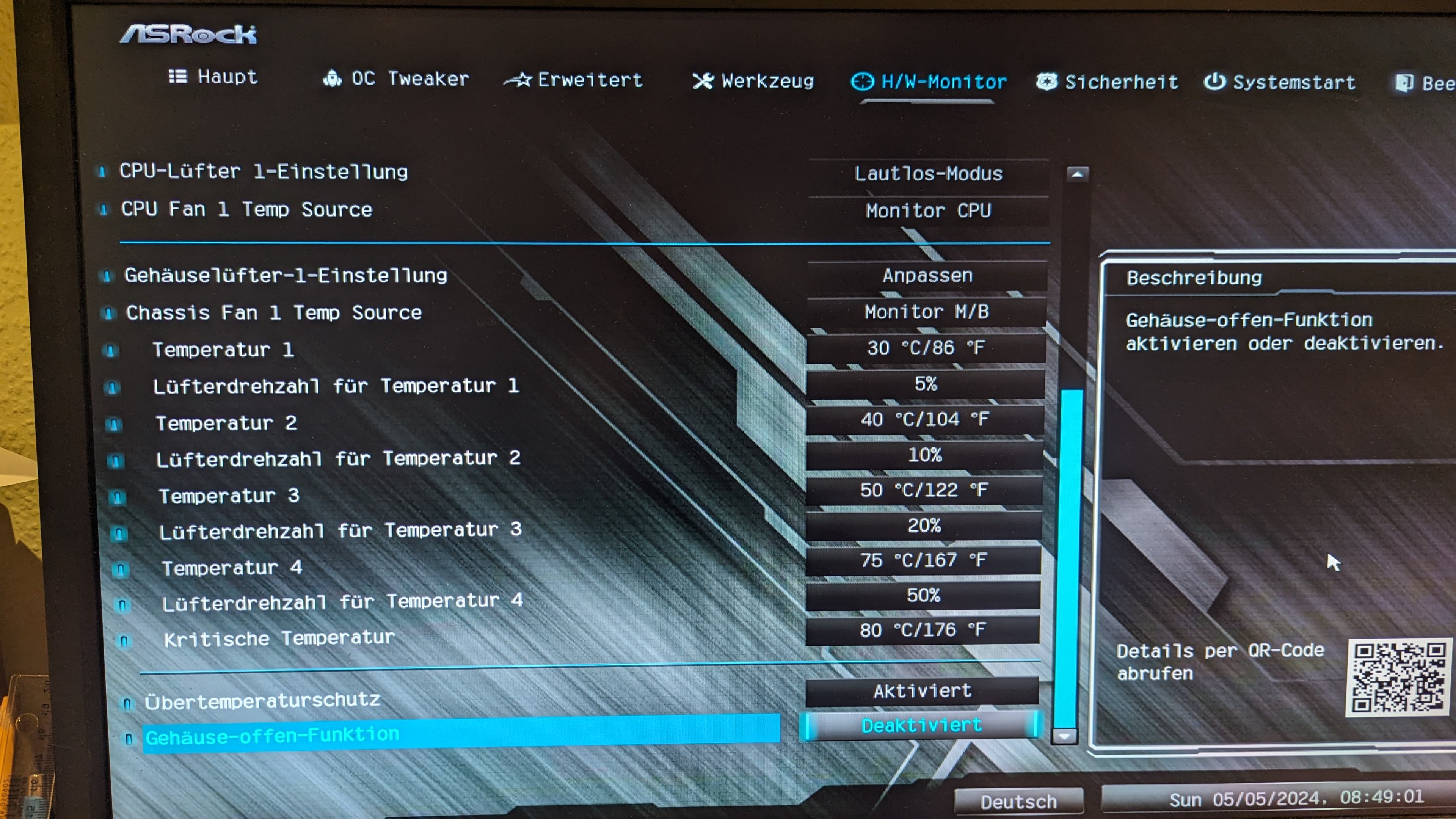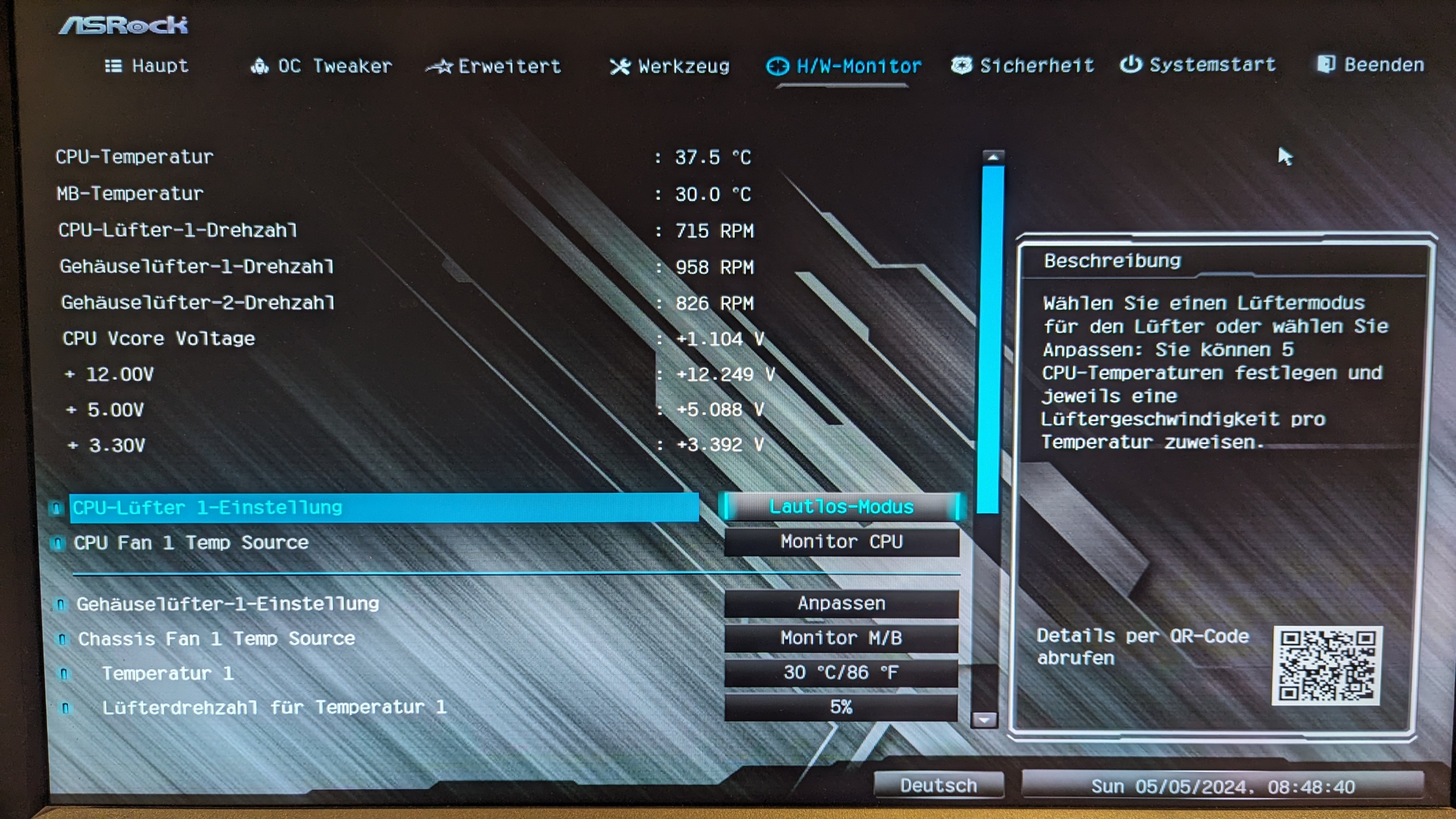Moin Leute, ich versuche gerade die am (Gehäuse)FAN1 des Mainboards angeschlossenen Lüfter (3 x BQ Silent Wings 2) zu regeln, leider regelt da gar nichts, egal was ich einstelle.