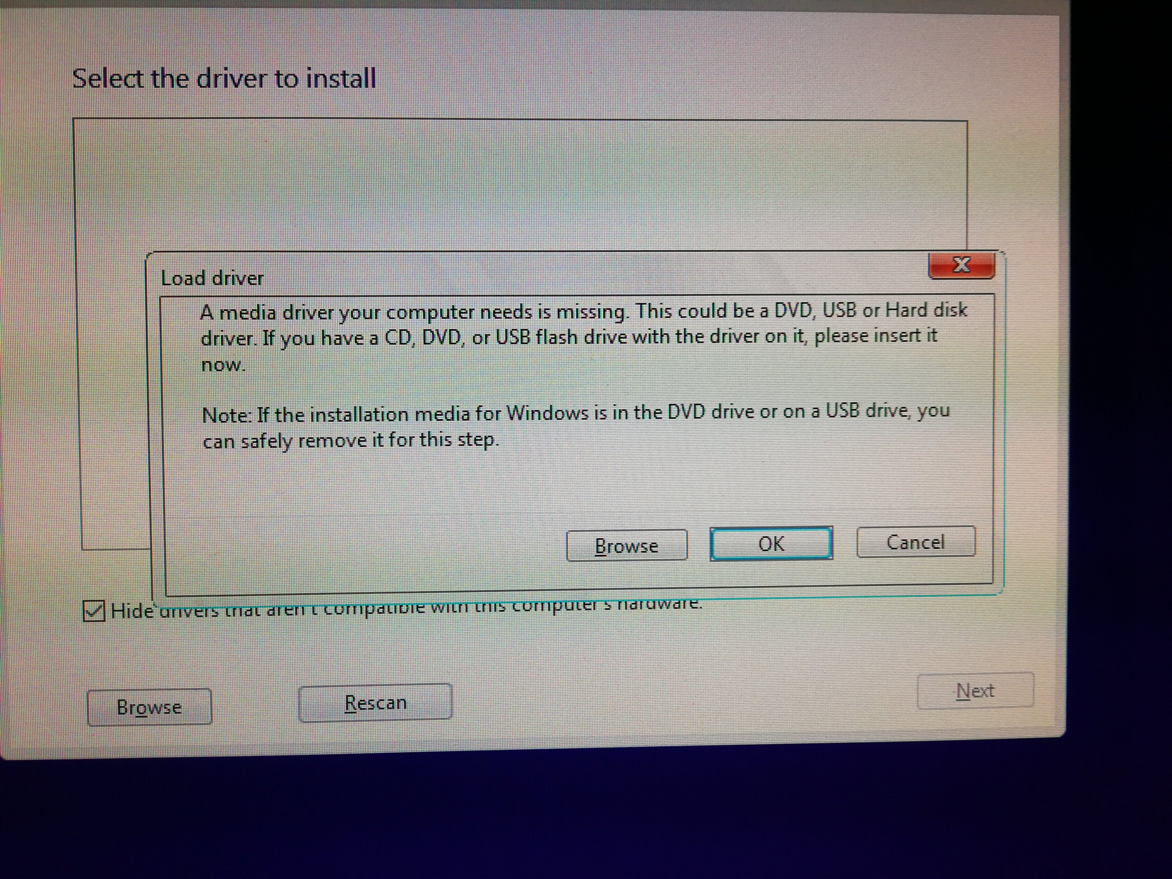 Setup kann die Festplatte / SSD nicht finden, hier würde der Treiber für den Festplatten Controller benötigt.