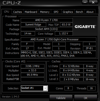 CPU: AMD Ryzen 7 1700 Eight-Core
