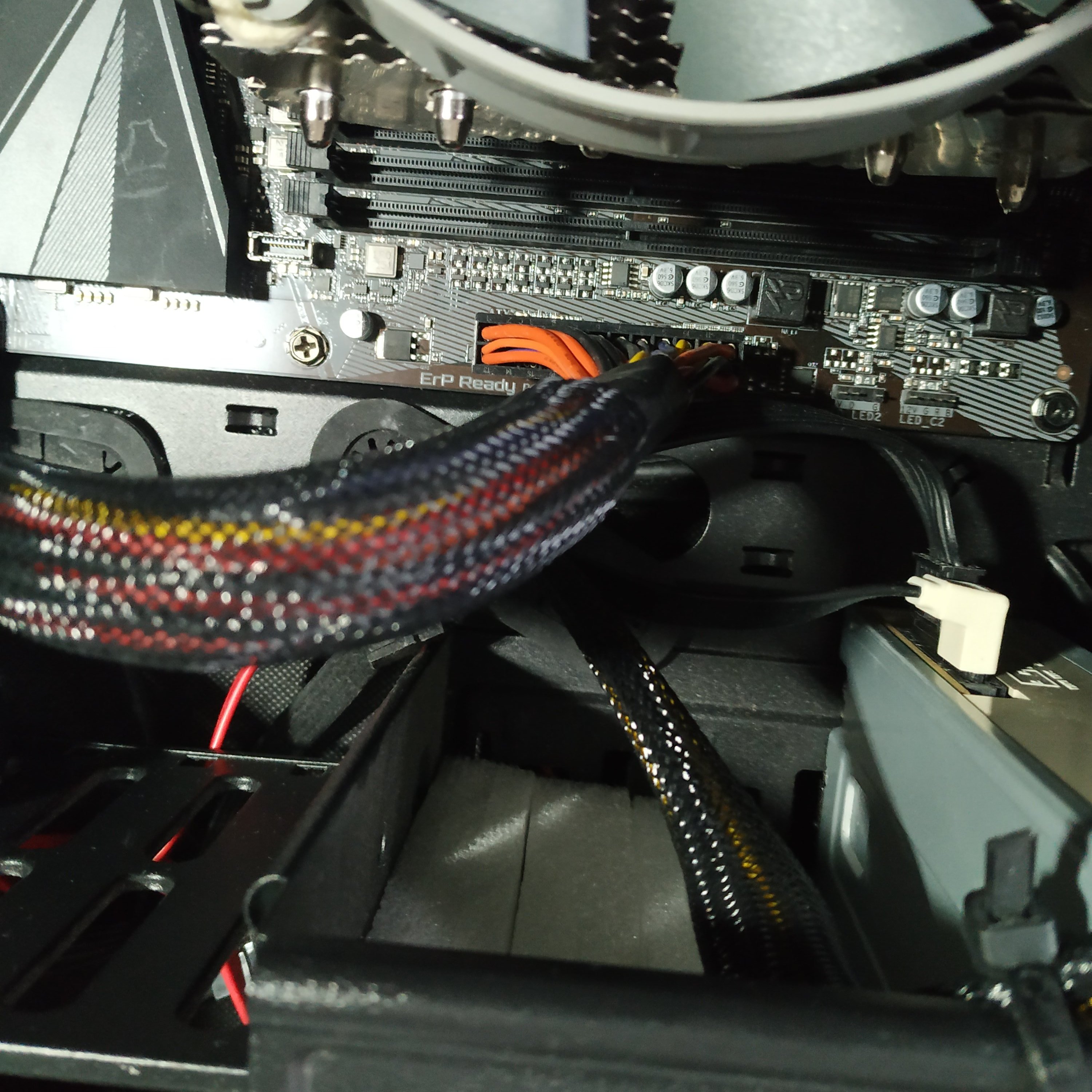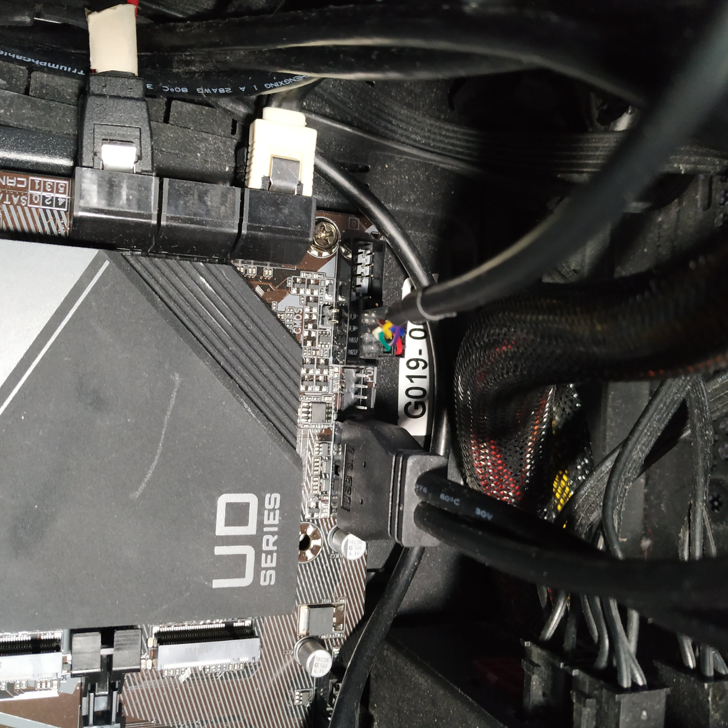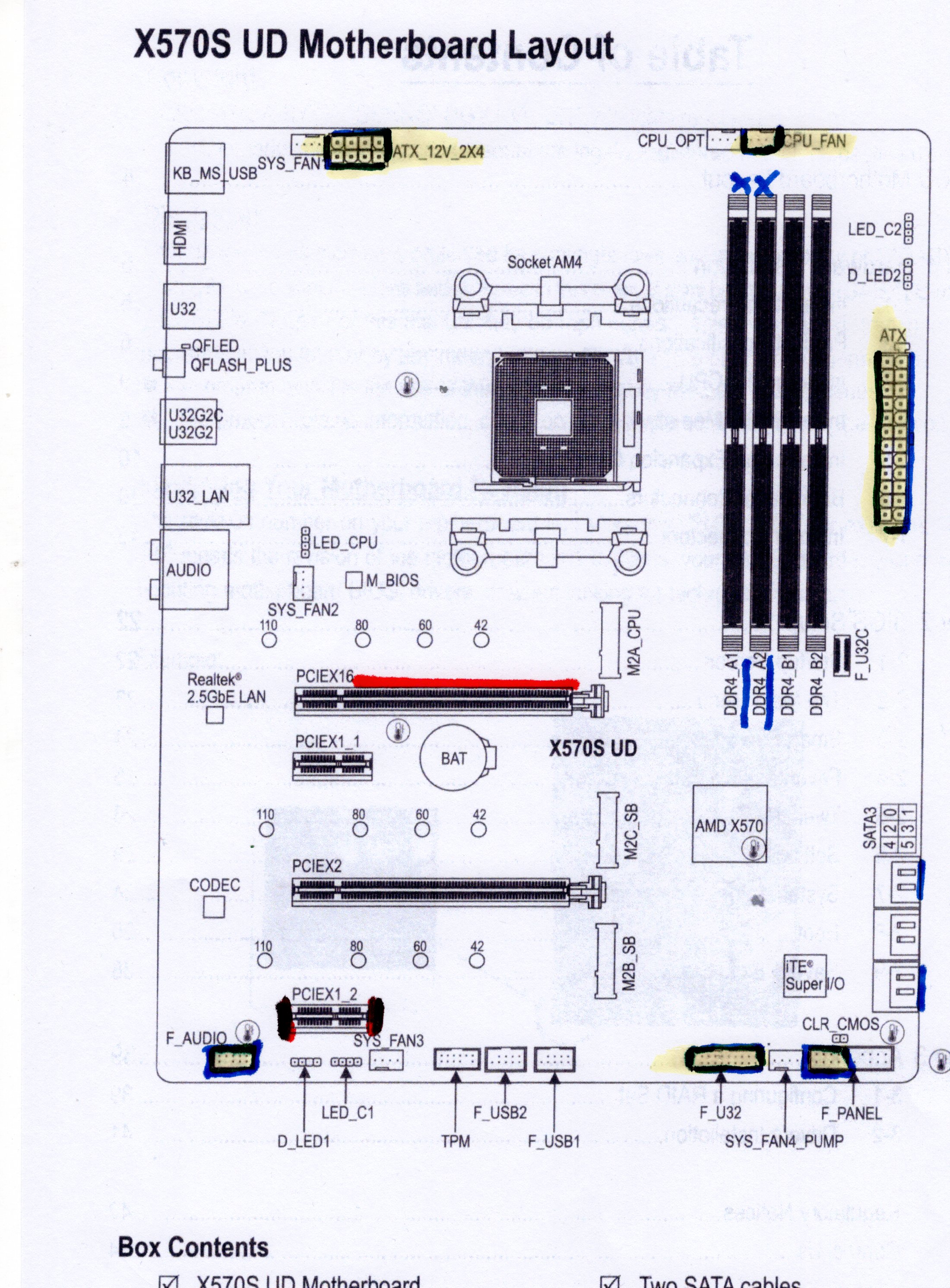 nun ein paar Fotos und eine Zeichnung, auf der habe ich Blau/Gelb die Anschlüsse markiert und in Rot den Anschluss für die Grafikkarte.
