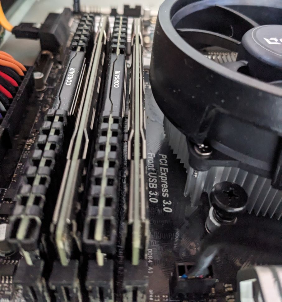 Als Hinweis kommt dass möglicherweise der CPU Kühler möglicherweise den Einbau der Ram behindert