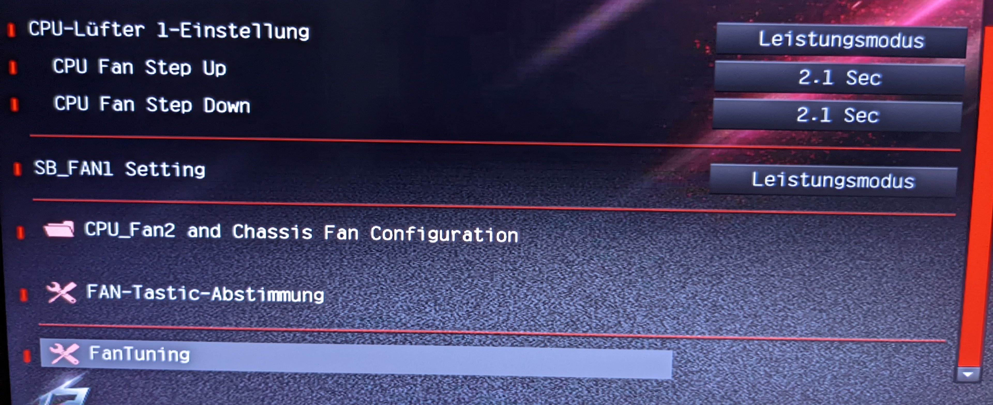 Eigentlich sollten da mehr Lüftereinstellungen sein.