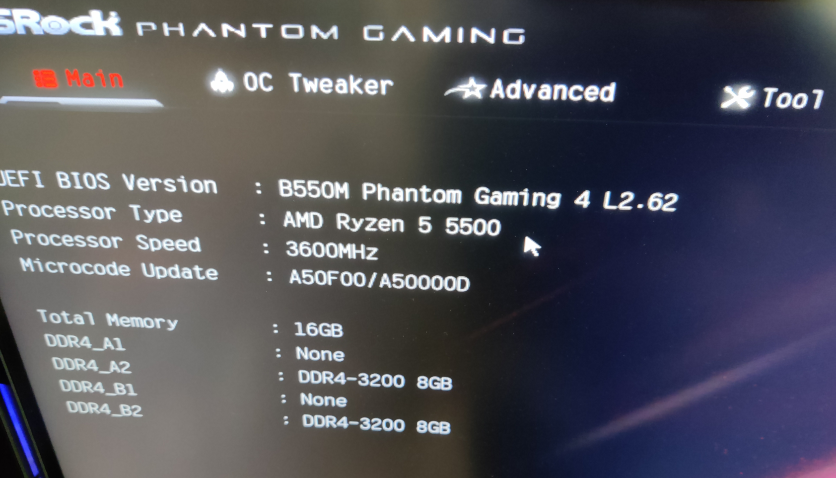 - Mainboard: ASRock B550M Phantom Gaming 4