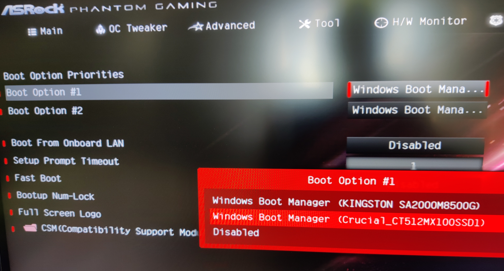 Sorry für die "Boomer-Screenshots". Natürlich steht die KINGSTON SSD auf Boot#1.
