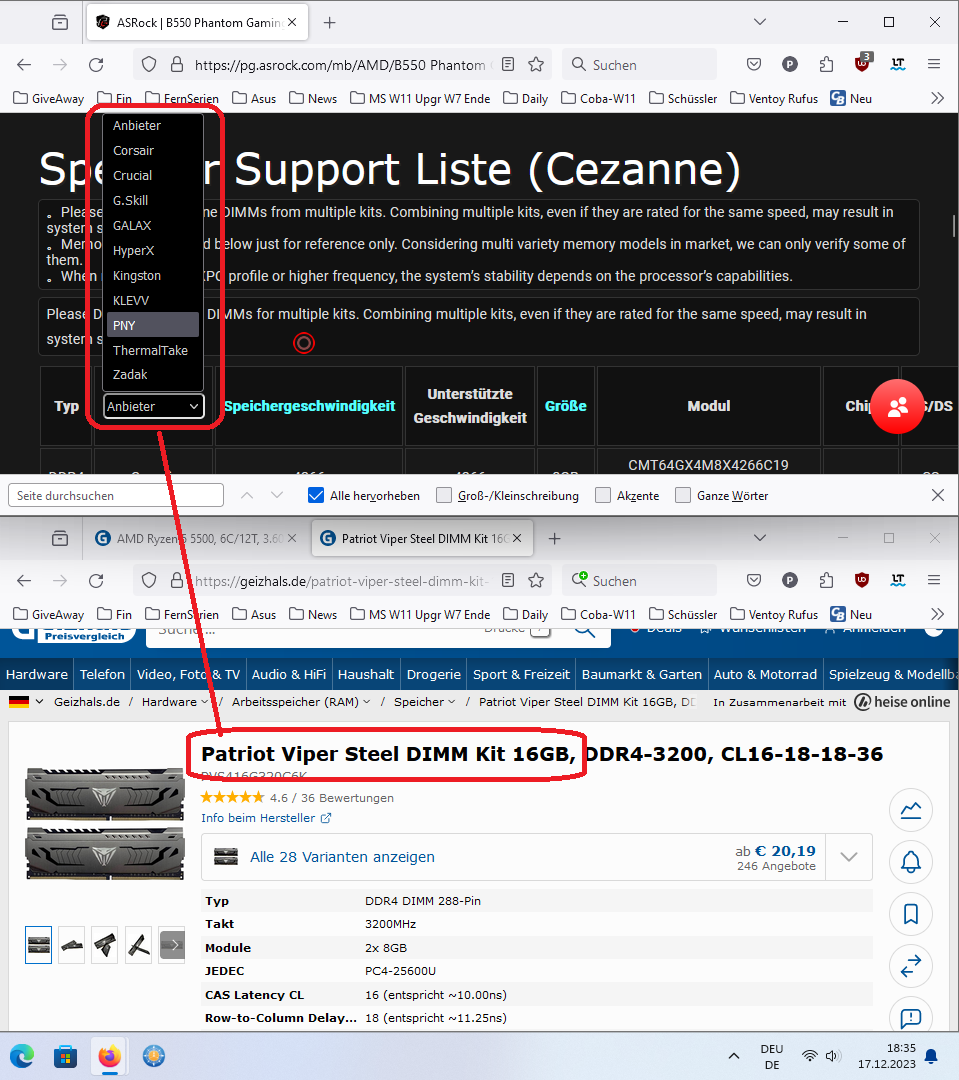 - Arbeitsspeicher (RAM): 16GB Patriot Viper Steel DDR4-3200
