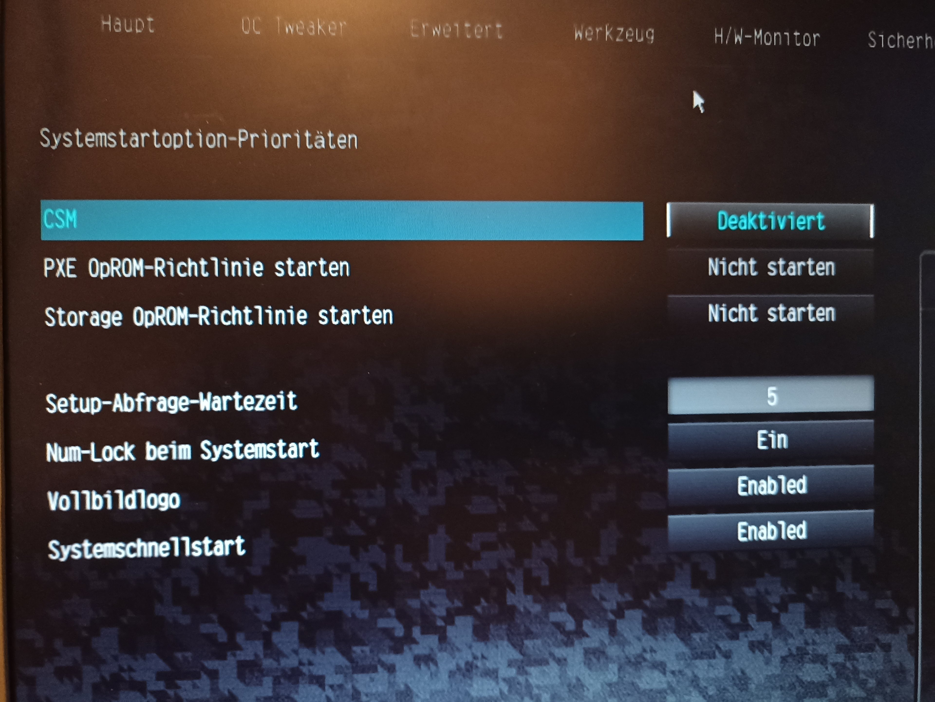 SSD wird im BIOS unter Reiter Advanced erkannt aber unter Reiter Boot wird keine Bootreihenfolge anzeigt.