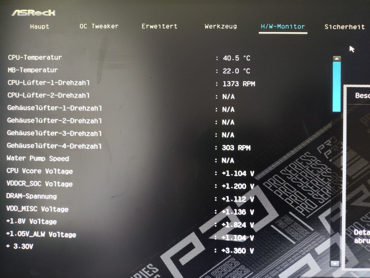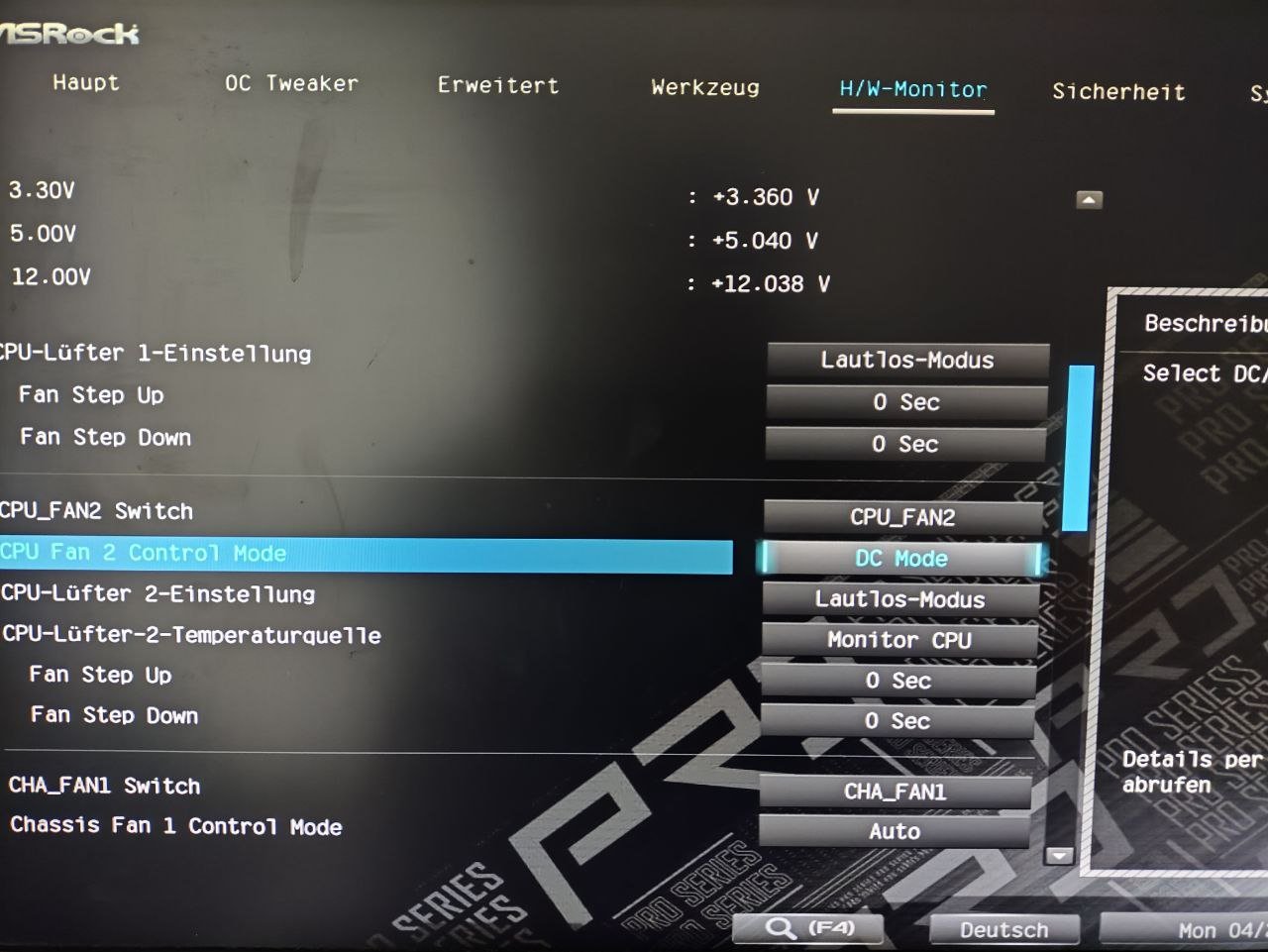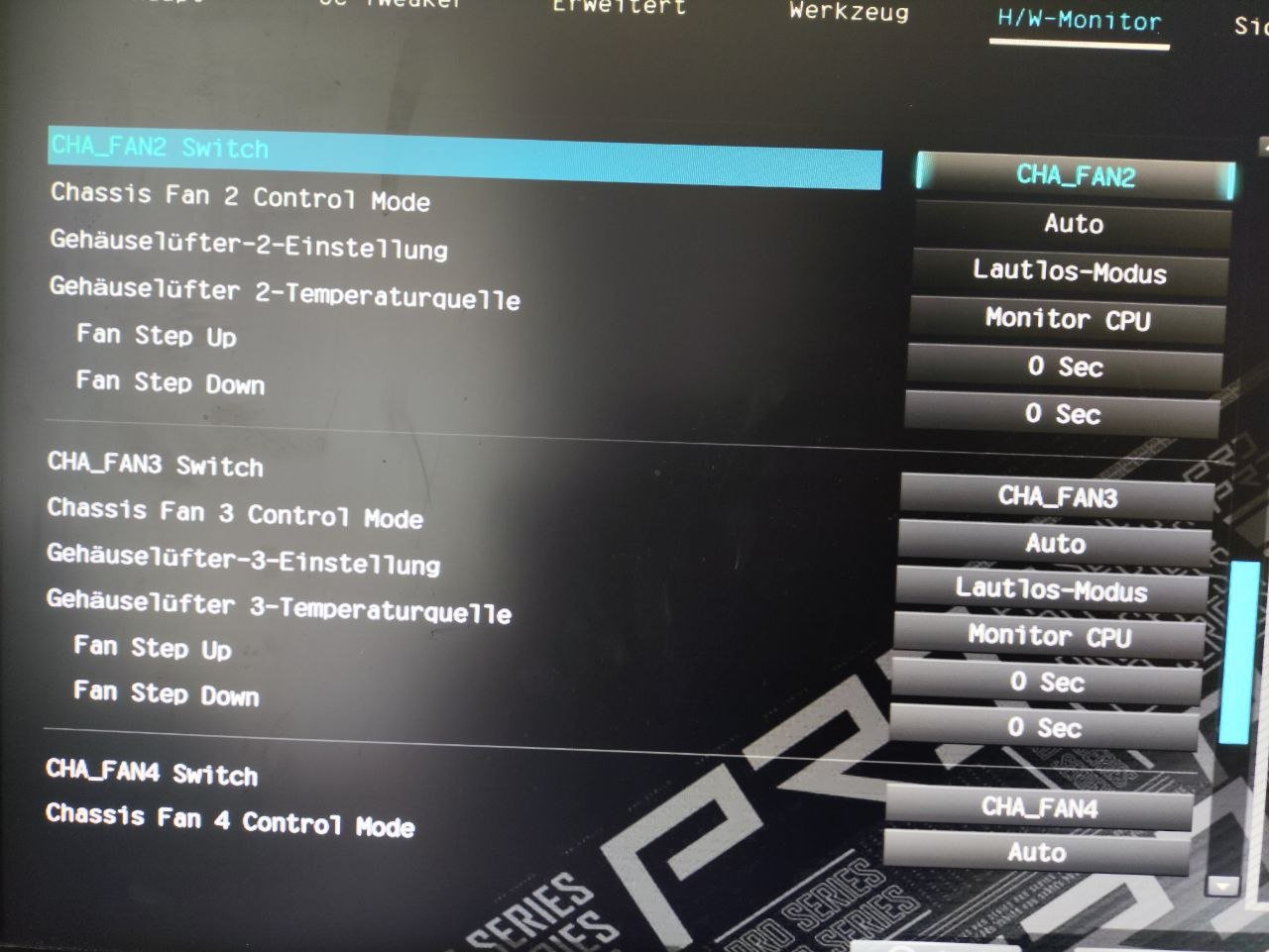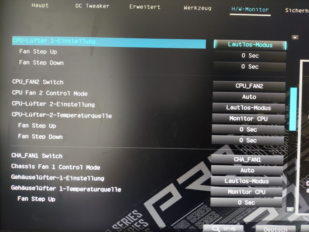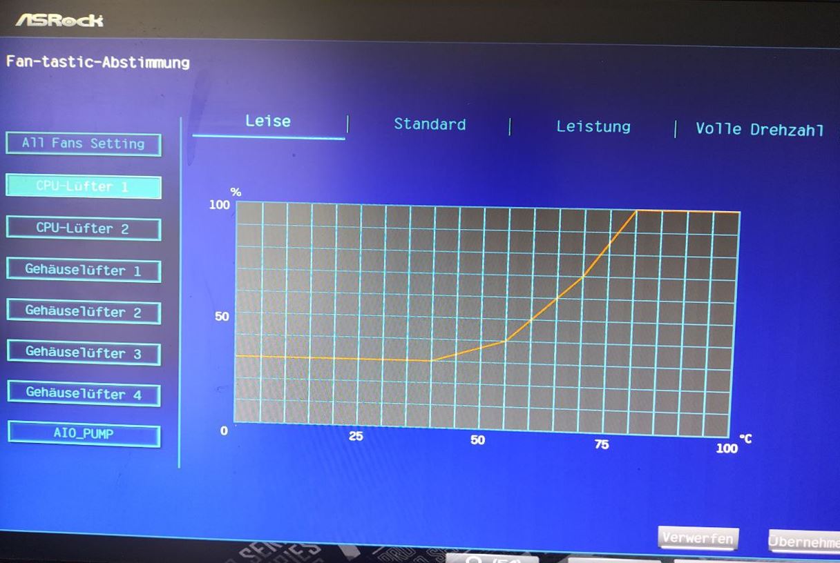 Der CPU-Lüfter dreht sehr laut auf, sehr störend. Davor wurde er mit einem i7 6700K und einem Asus Z170 Board betrieben und war sehr ruhig. Im Bios hatte ich mir die Lüftersteuerung angeschaut, aber hier steht der Lüfter schon auf "leise". Das verstellen der Lüfterkurve hatte keinen Unterschied gemacht. CPU Lüfter 2 liefert auch keine Drehzahl mehr, obwohl er sich dreht. Ich erhielt allerdings gleich nach Inbetriebnahme des Rechners hier schon mal eine Drehzahl.