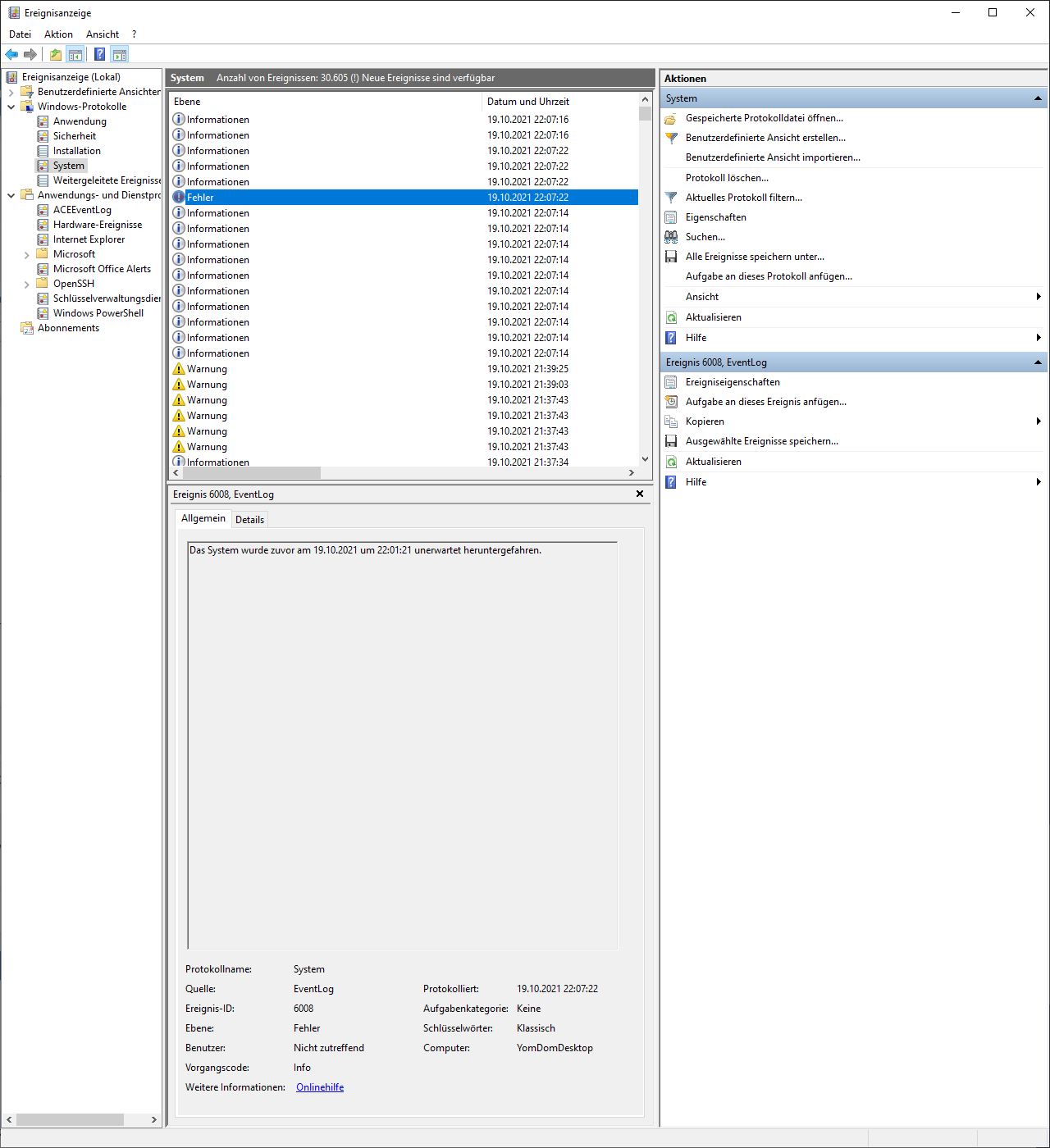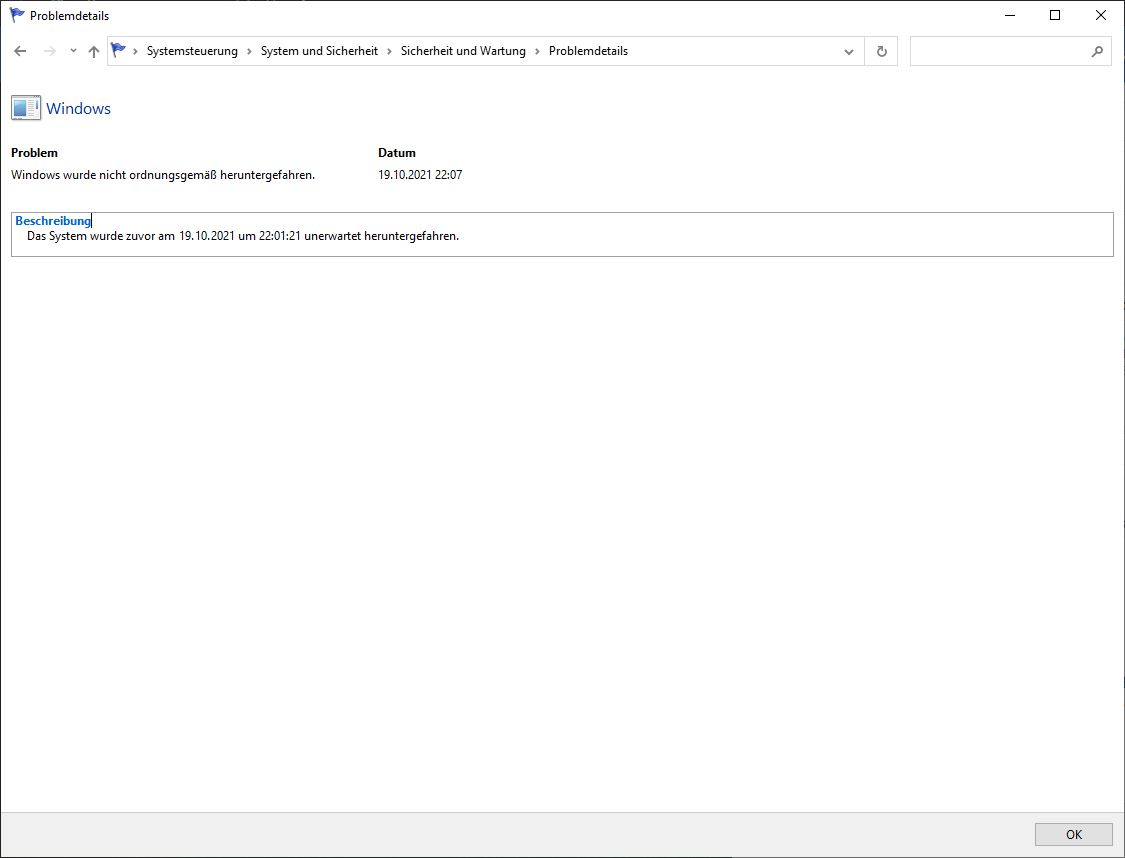 Allerdings habe ich in der Ereignisanzeige keinen Fehler zu dem Zeitpunkt den mir die Zuverlässigkeitsüberwachung ausgibt..