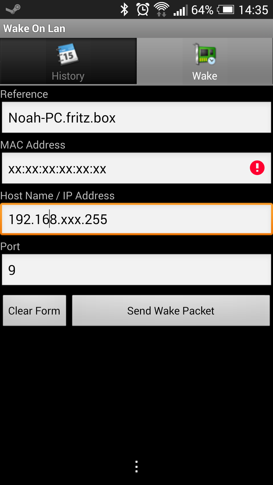 wie schon im Titel geschrieben versuche ich gerade Wake on Lan auf meinem Asrock Fatal1ty H87 zum Laufen zu bekommen. Im UEFI habe ich sämtliche Funktionen zu WoL aktiviert und wenn der PC ausgeschalten ist, blinkt auch das LAN Kabel hinten im 2 Sekunden Takt. Starten möchte ich den PC nun über die "WoL Wake On Lan Wan" App aus dem Android Play Store. Als Namen habe ich dabei den Namen angegeben den die Fritz Box meinem PC gibt: xxxx-PC.fritz.box. Die MAC Adresse habe ich vom CMD übernommen und das gleiche mit der IP Adresse. Der Port ist standartmäßig auf 9 eingestellt. Lediglich im Feld SecureOn steht noch FF-FF-FF-FF-FF-FF wovon ich nicht weiß was dies bedeutet. Leider funktioniert das WoL nicht und ich habe keine Idee woran es liegen kann.