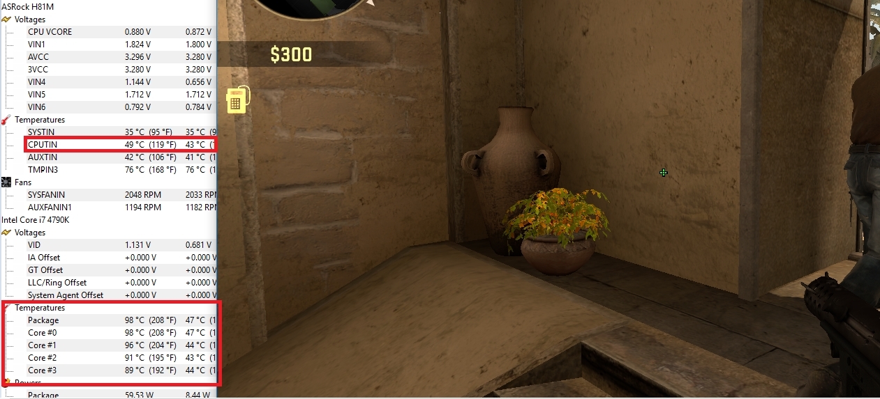 Sobald ich für nur etwa 10 Sekunden ein Spiel starte mit einer maximal 20% CPU Auslastung, erhalte ich bis zu 100°C Core Temps. Der CPUTIN hingegen geht langsam hoch auf so ungefähr 60 bis maximal 70 Grad.