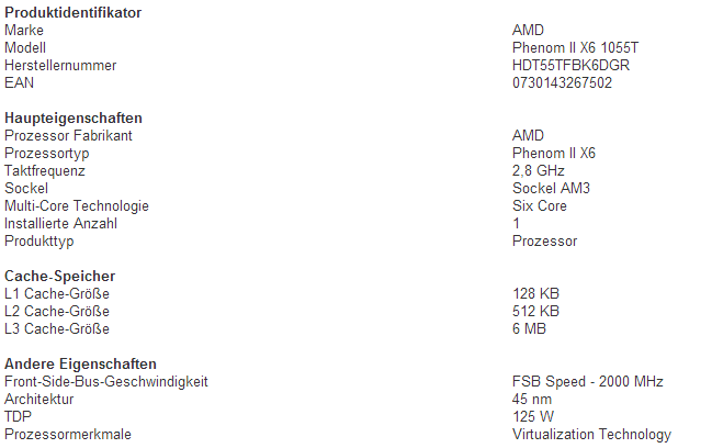 AMD Phenom II X6 1055T - 2,8 GHz Six Core (HDT55TFBK6DGR) Prozessor Also Supported